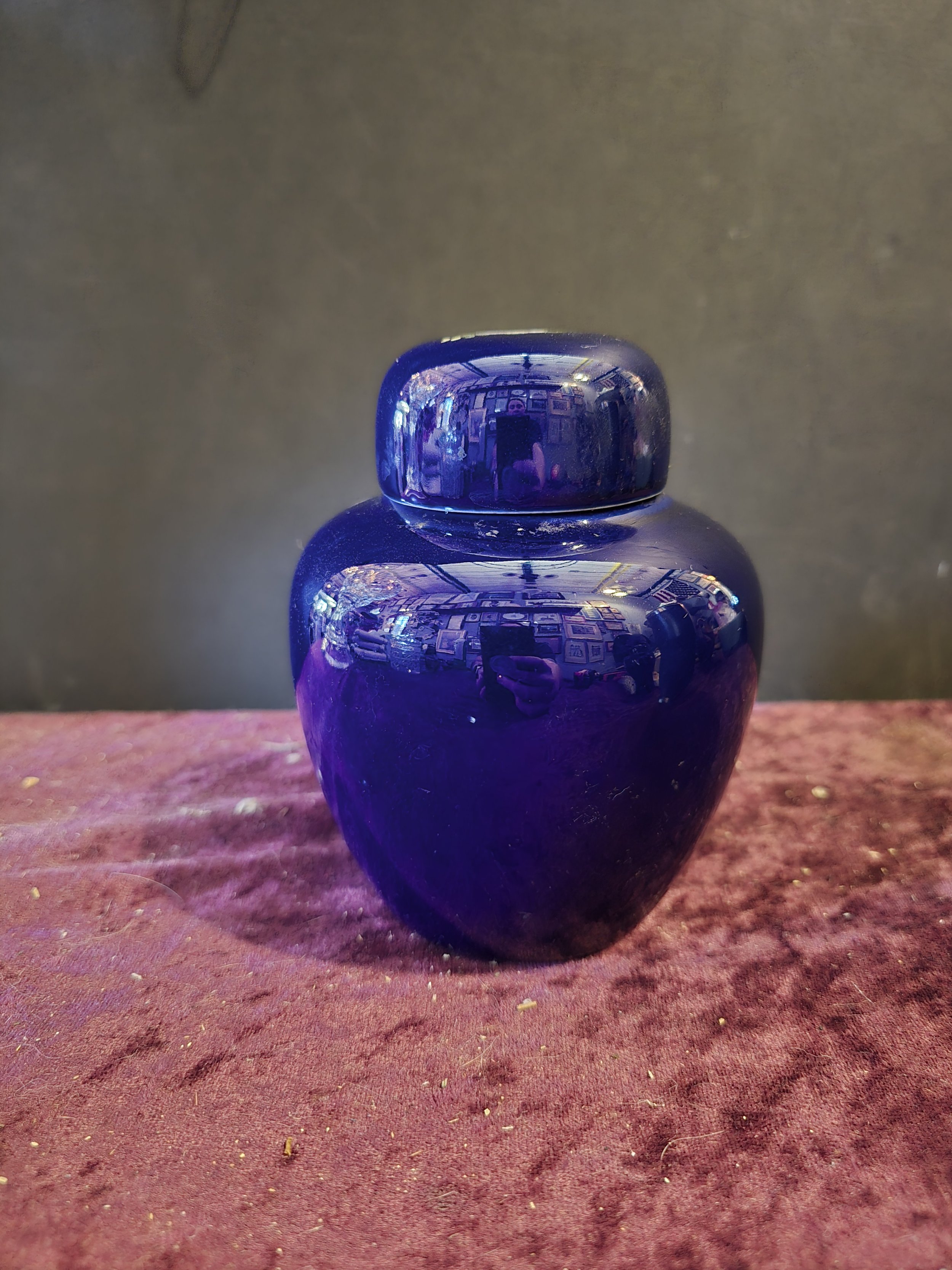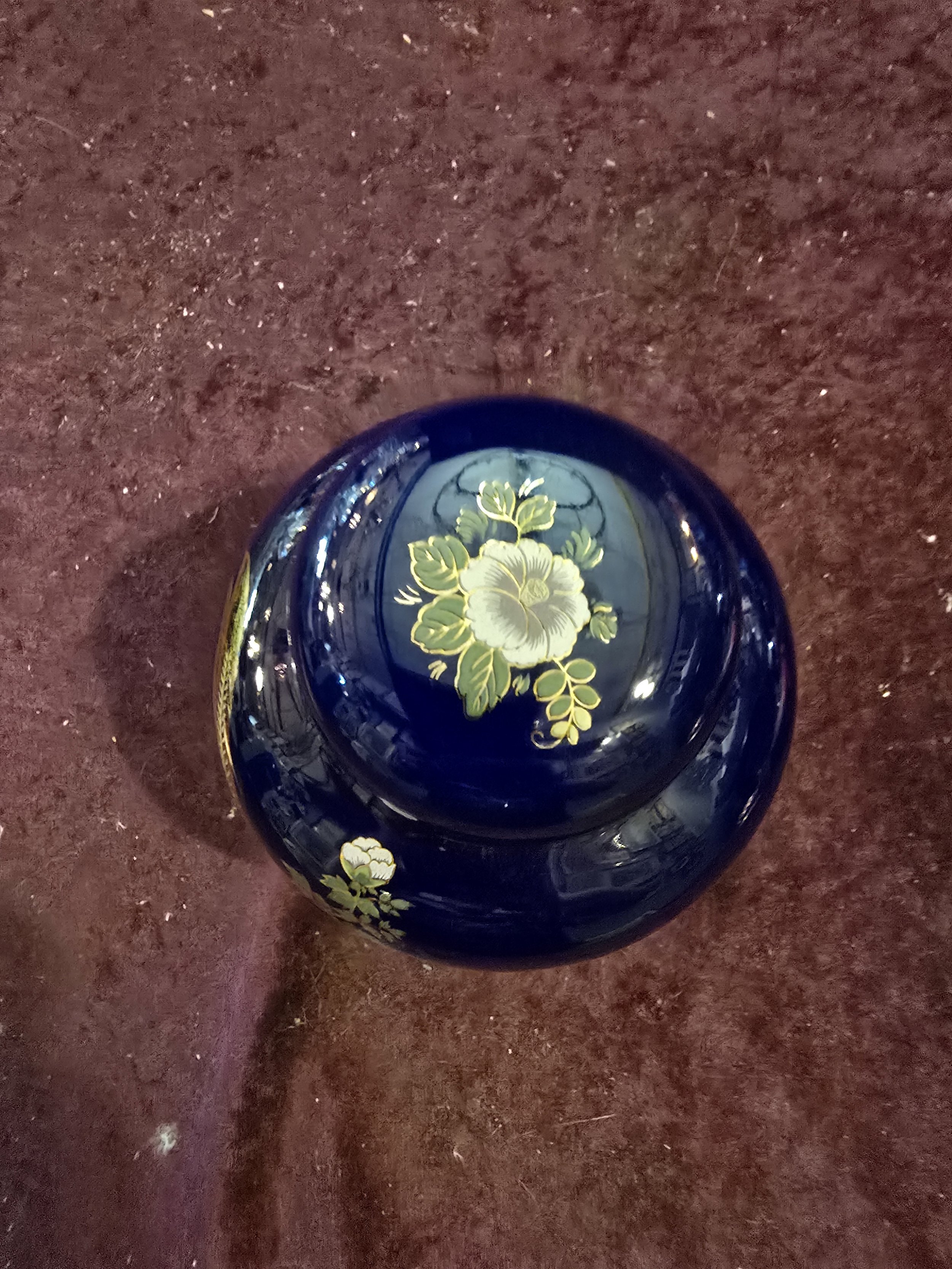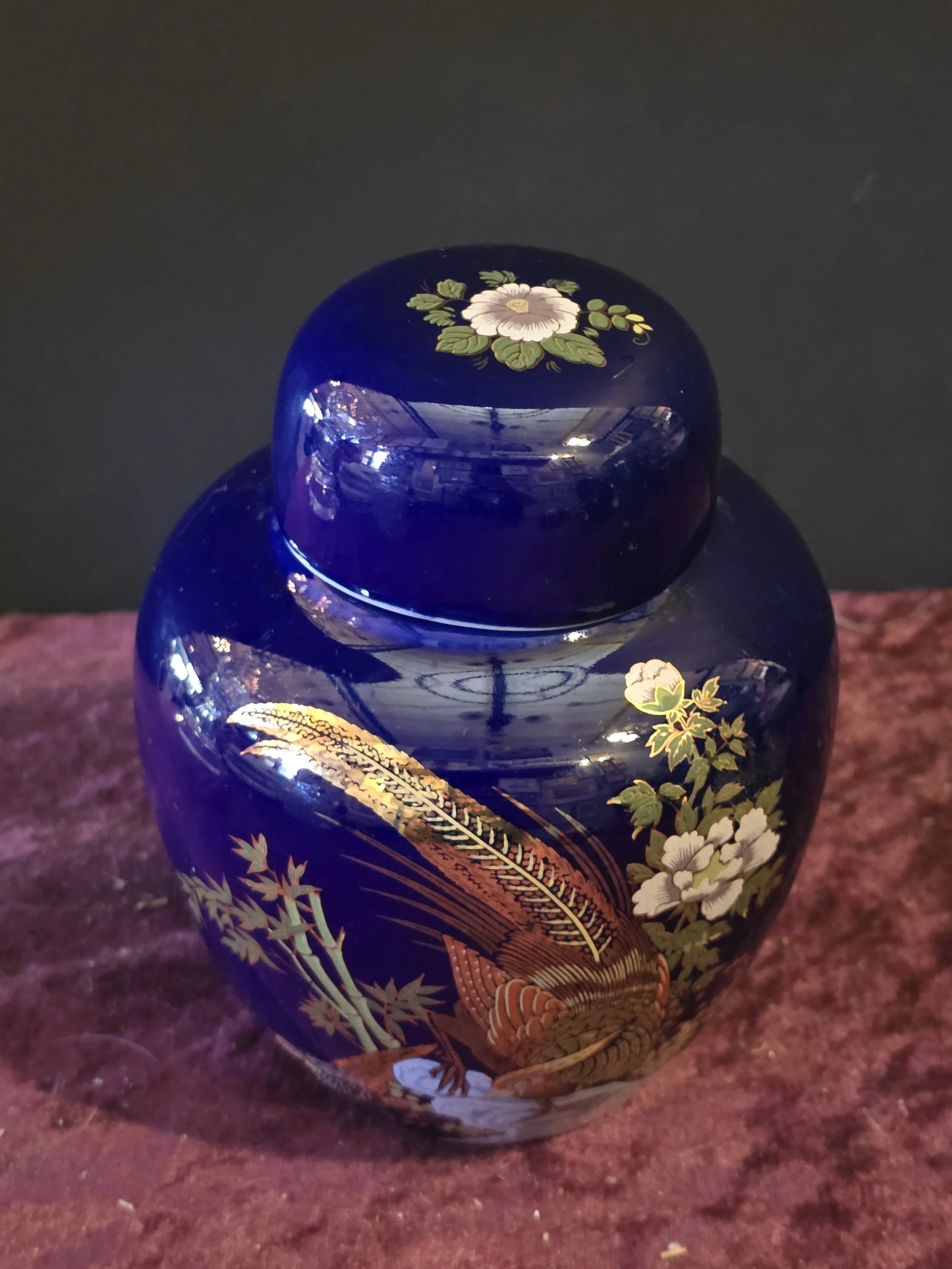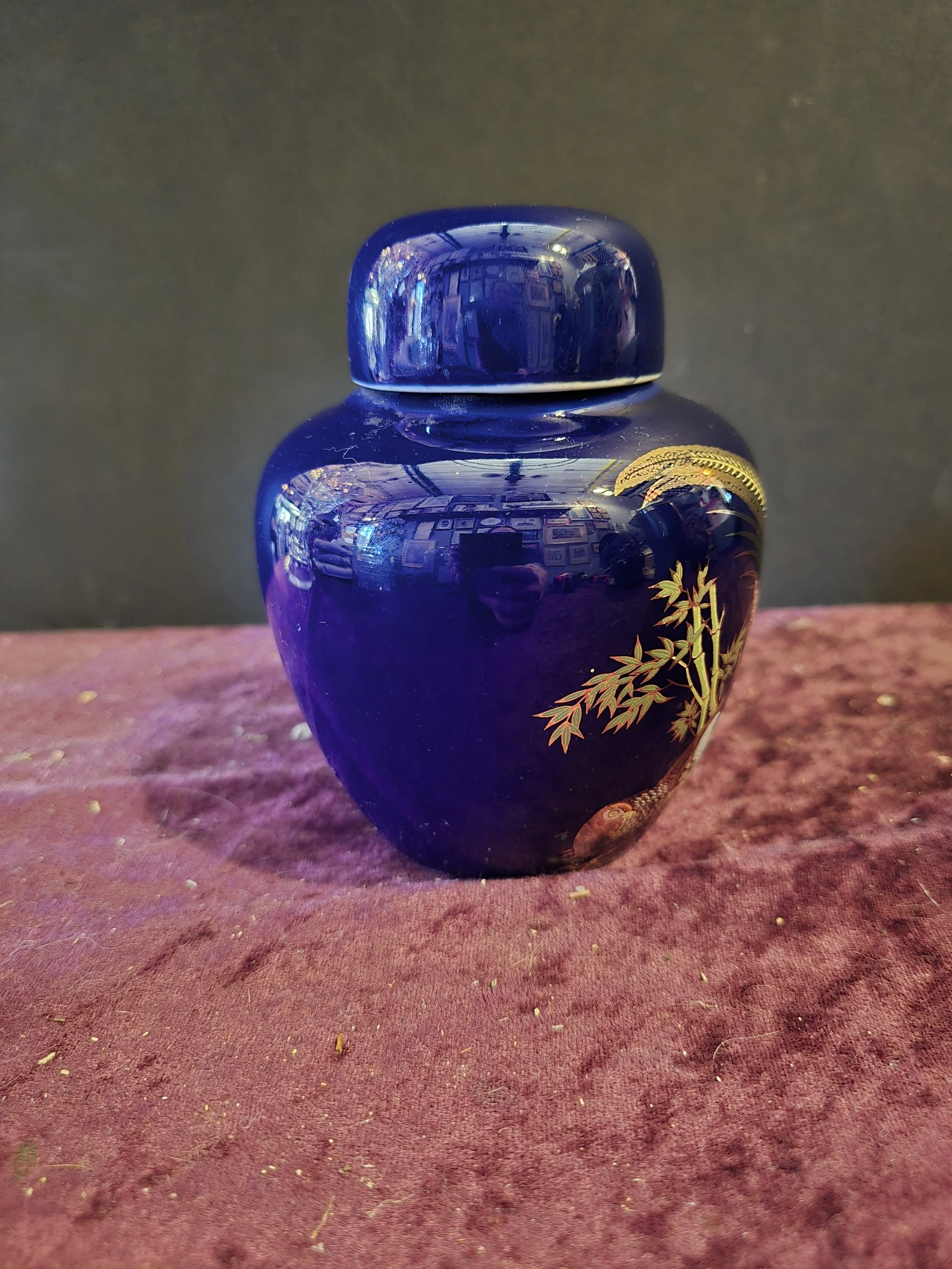 Vintage Cobalt Blue Ginger Jar: Floral Peacock Japanese Ceramic