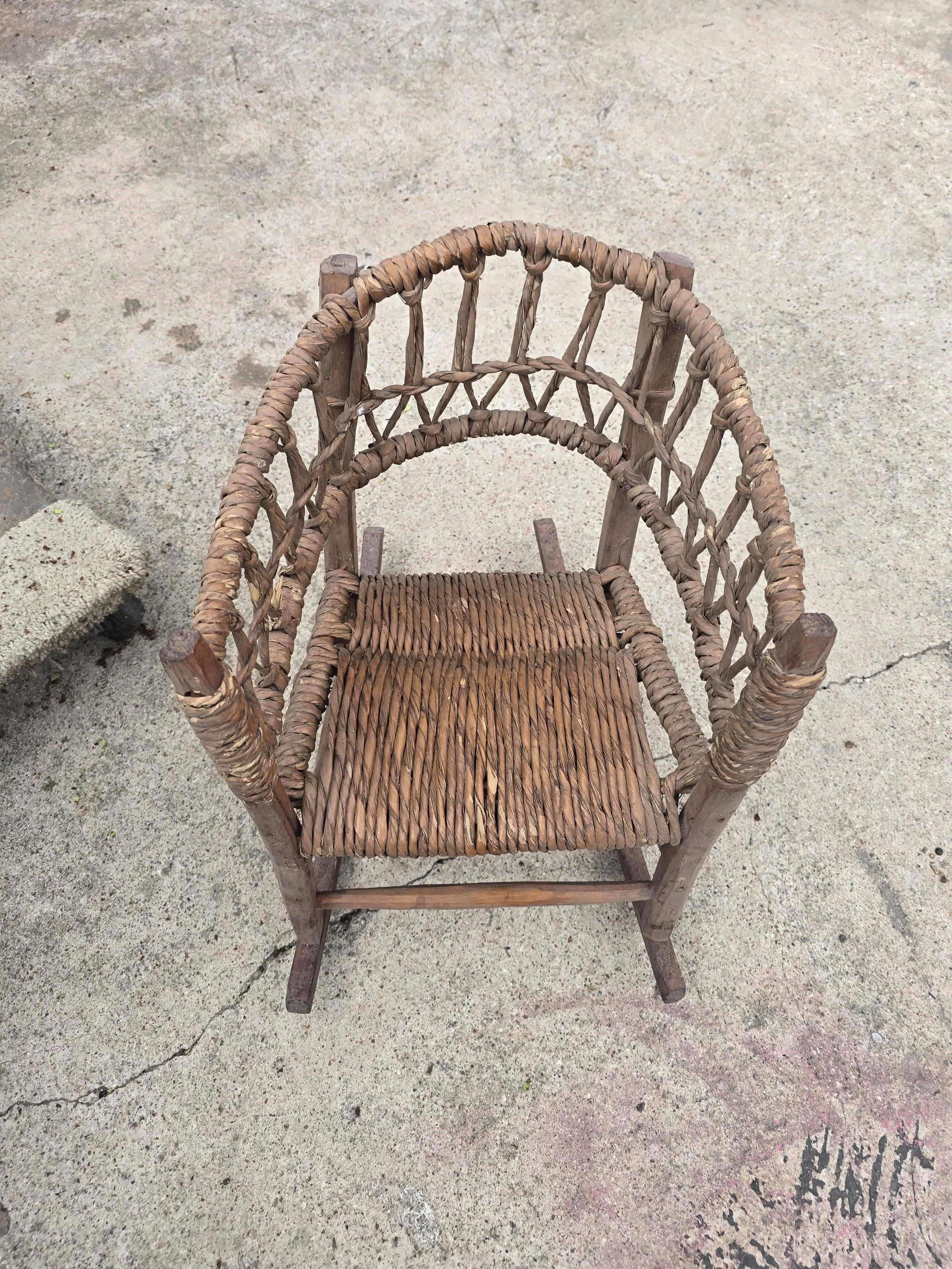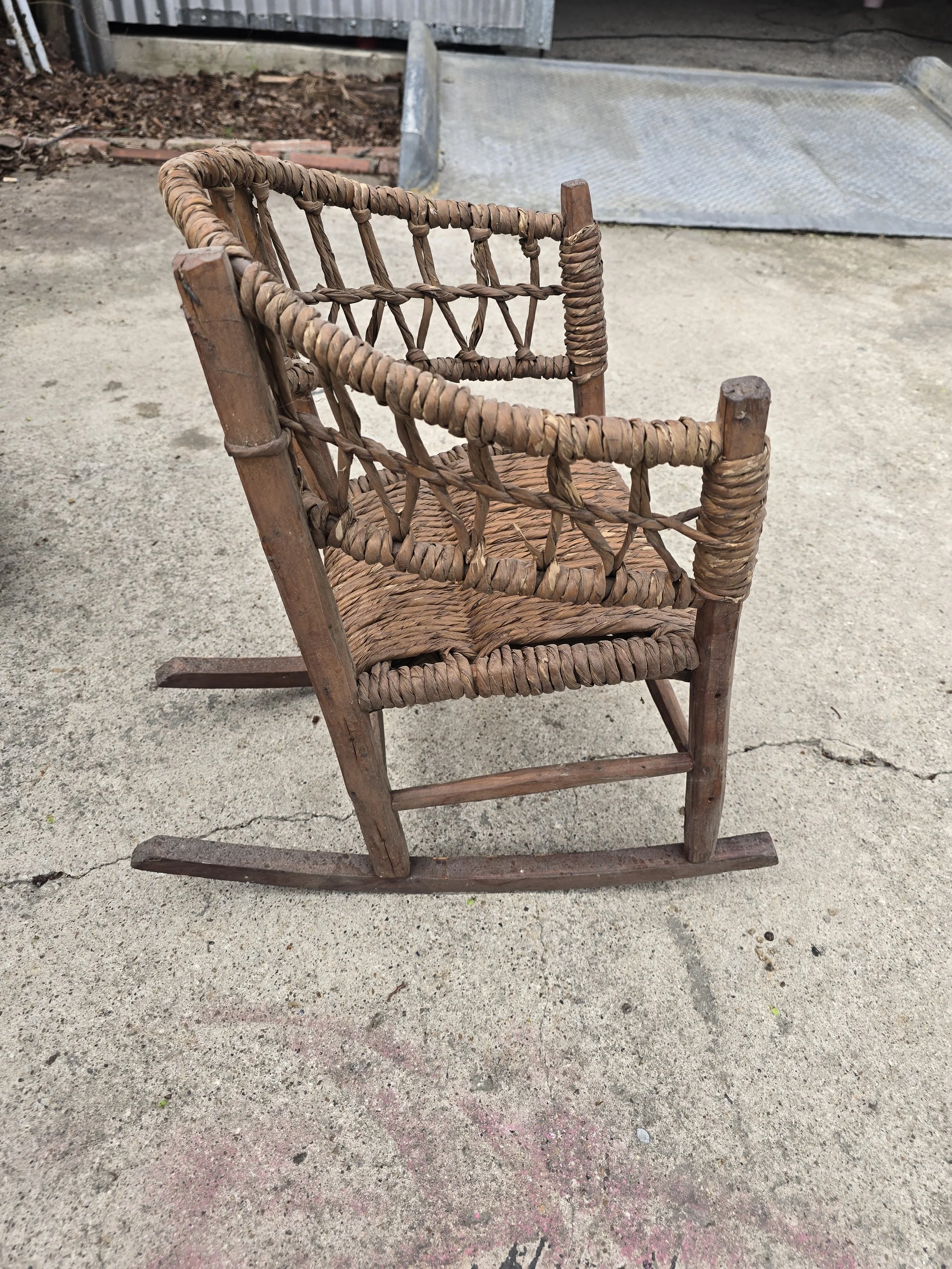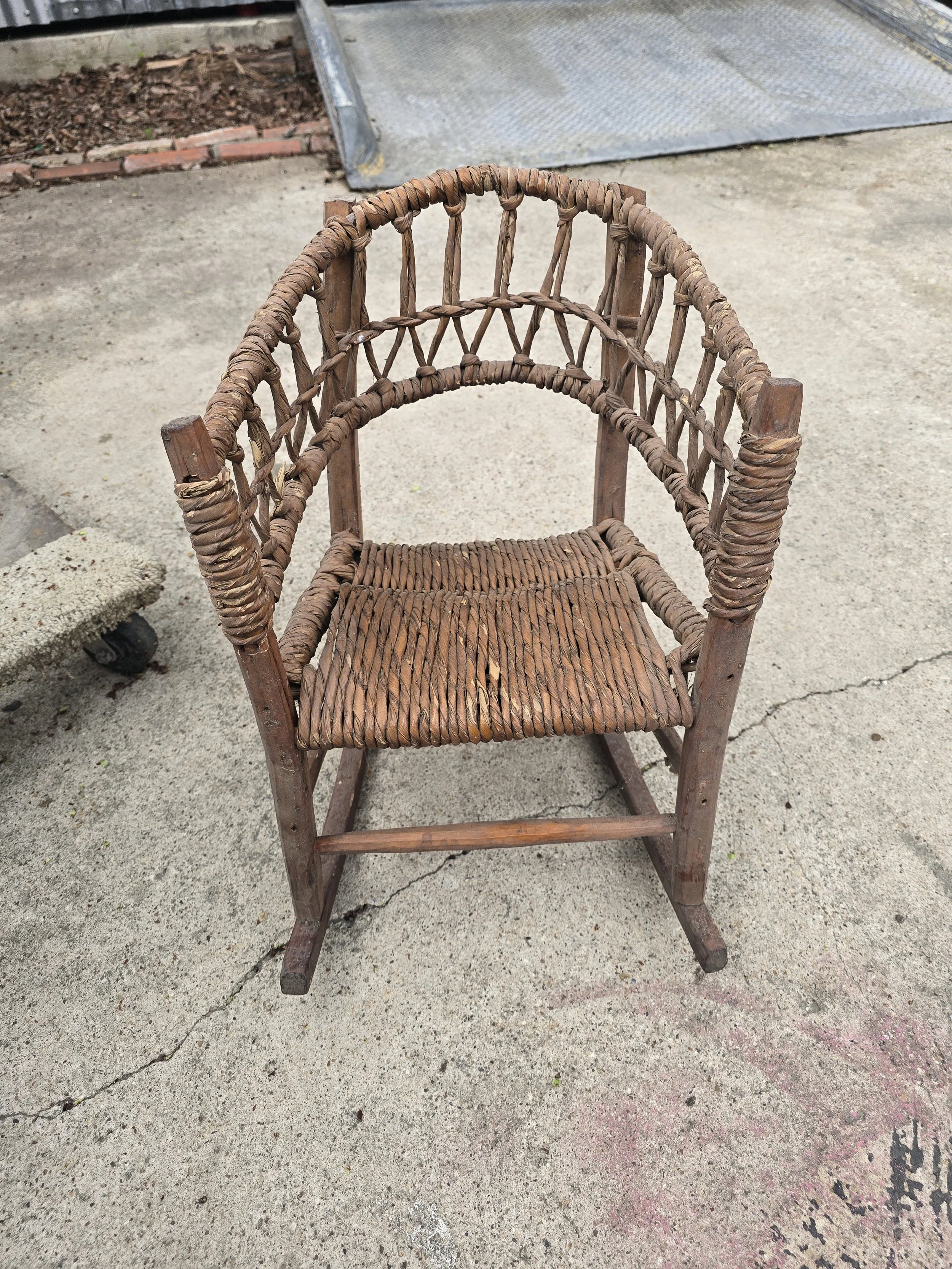 Precious woven child's rocking chair. Would be great for a toddler or even for dolls.