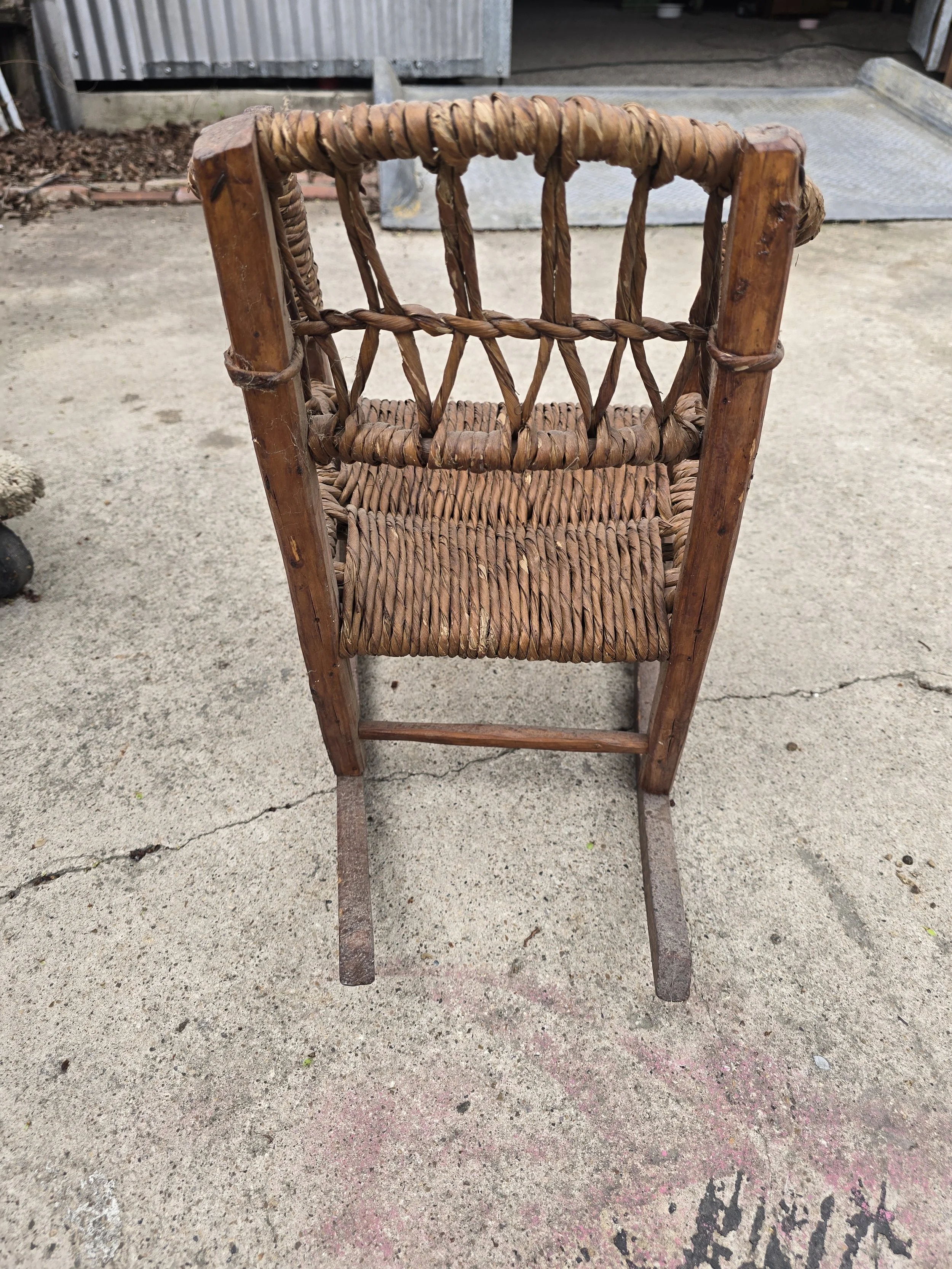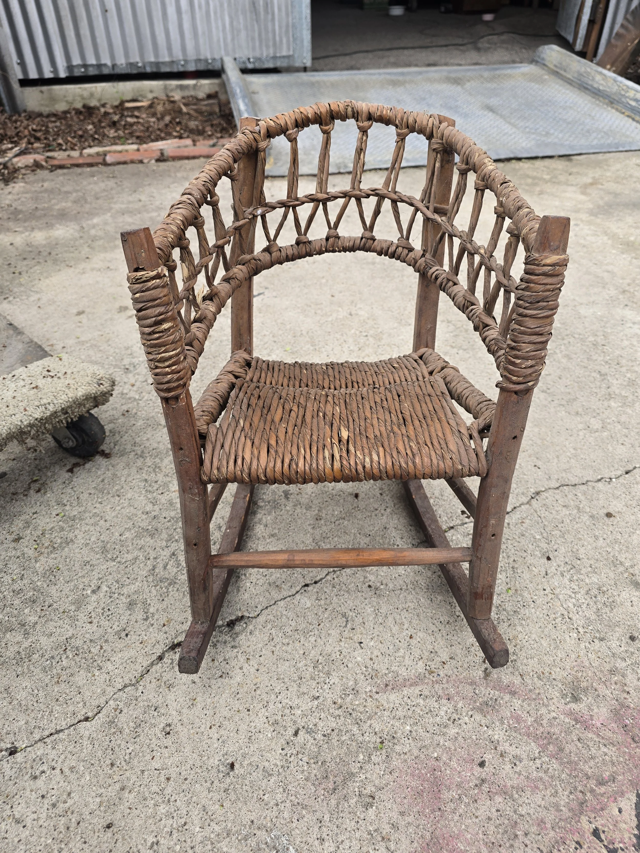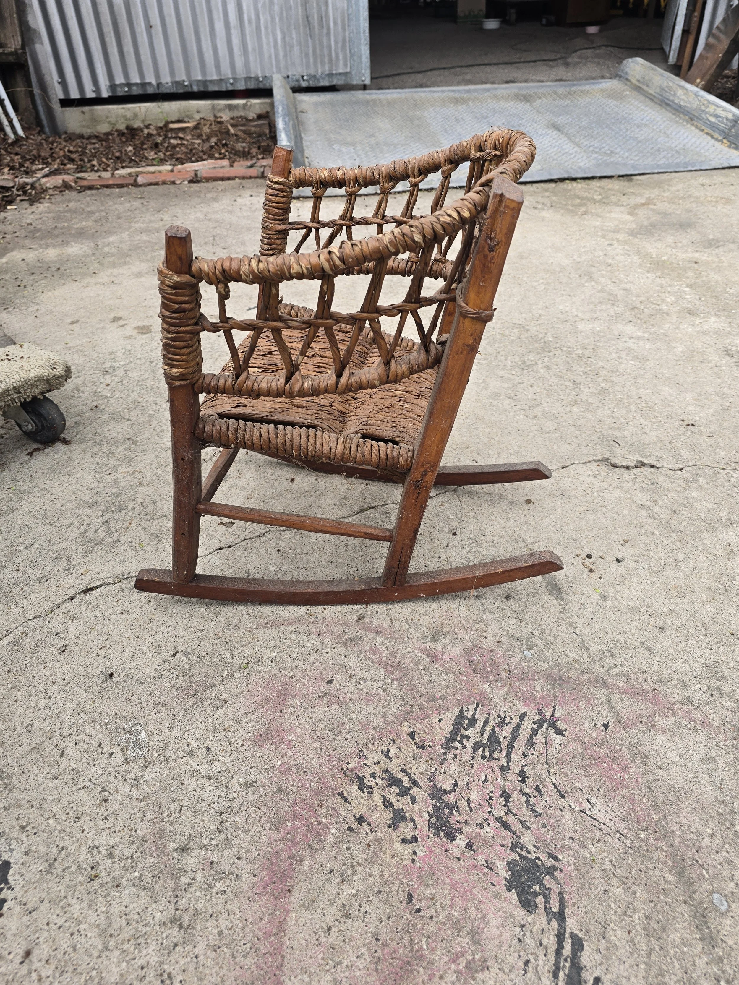 Precious woven child's rocking chair. Would be great for a toddler or even for dolls.
