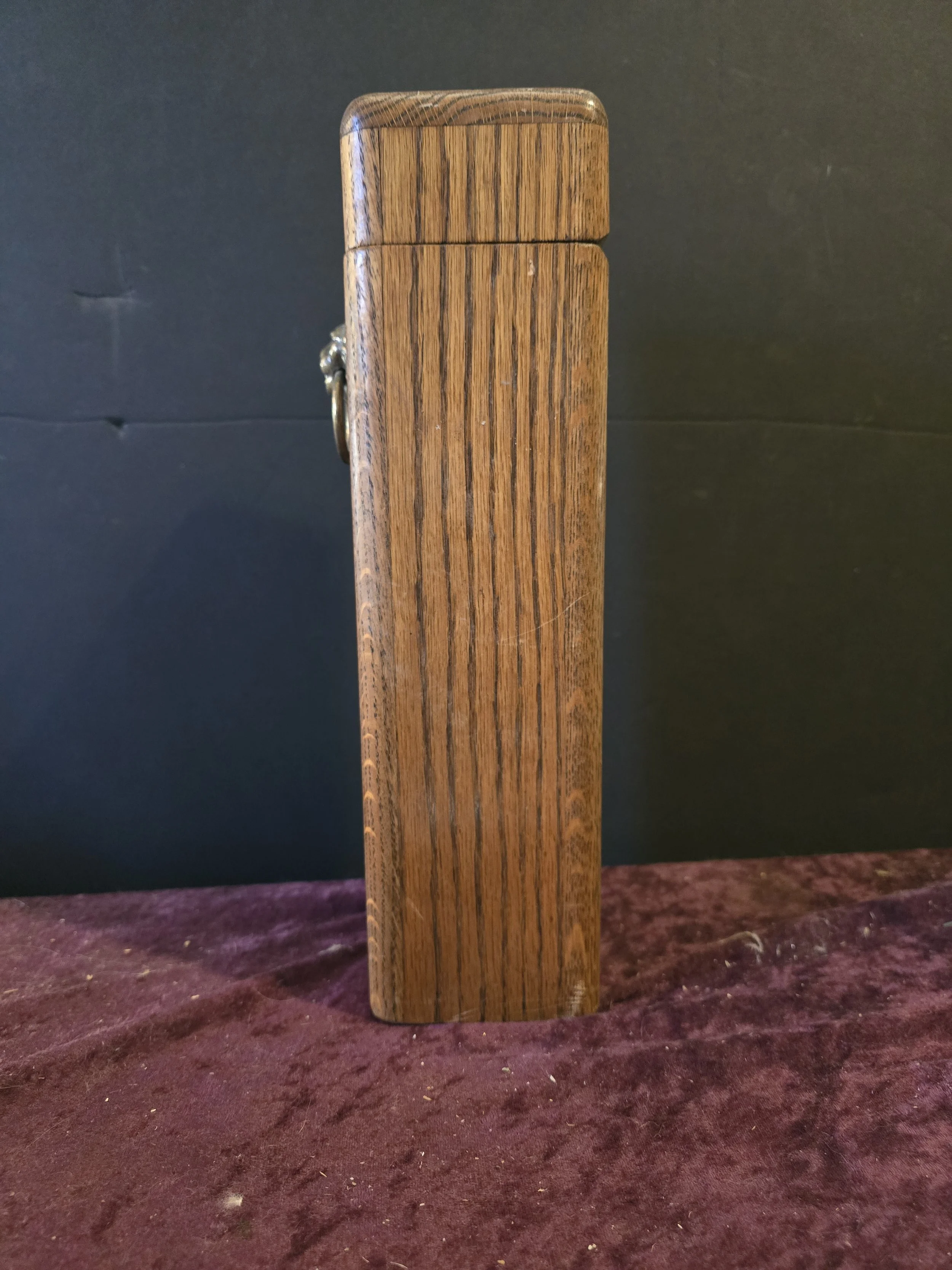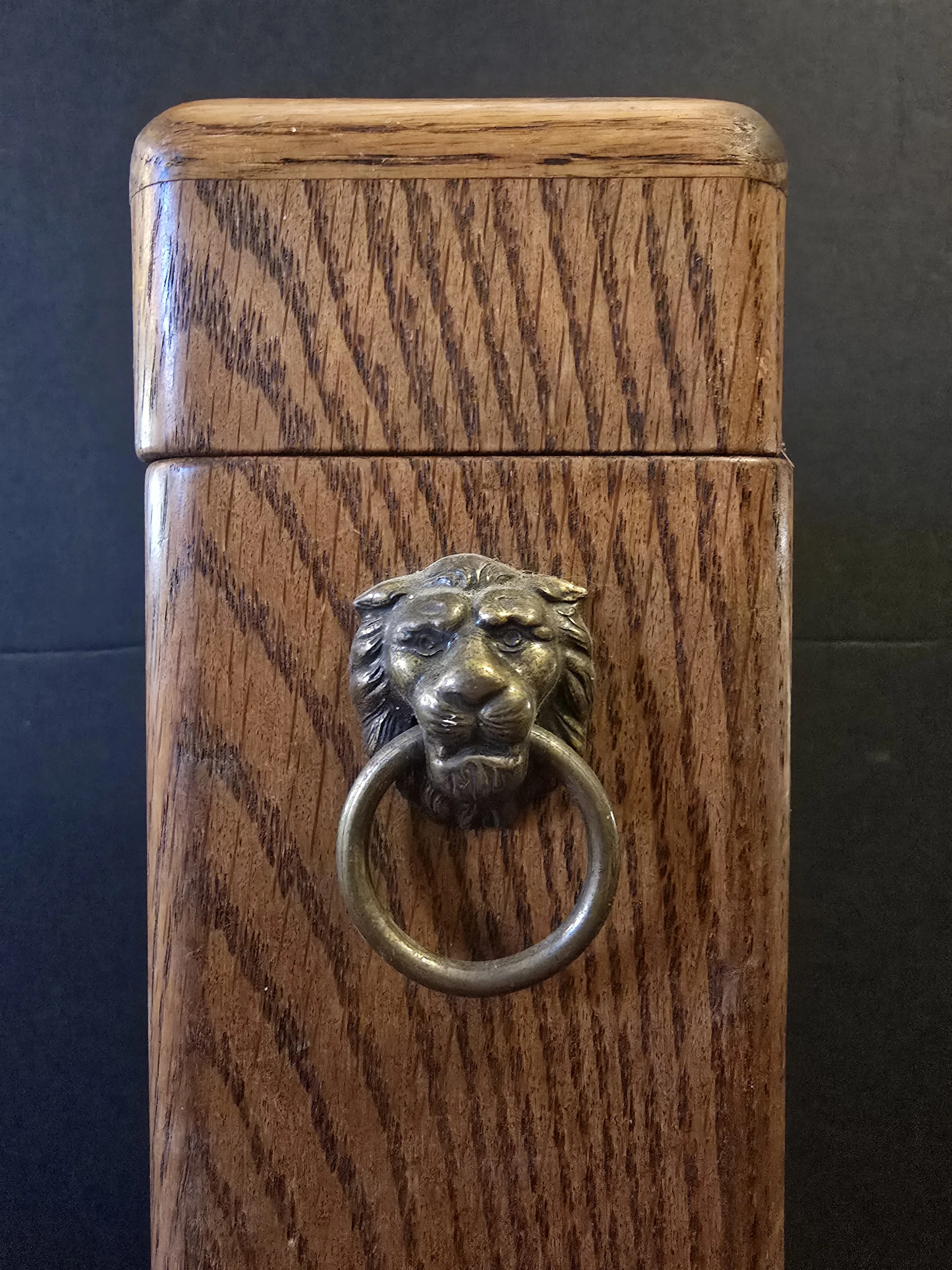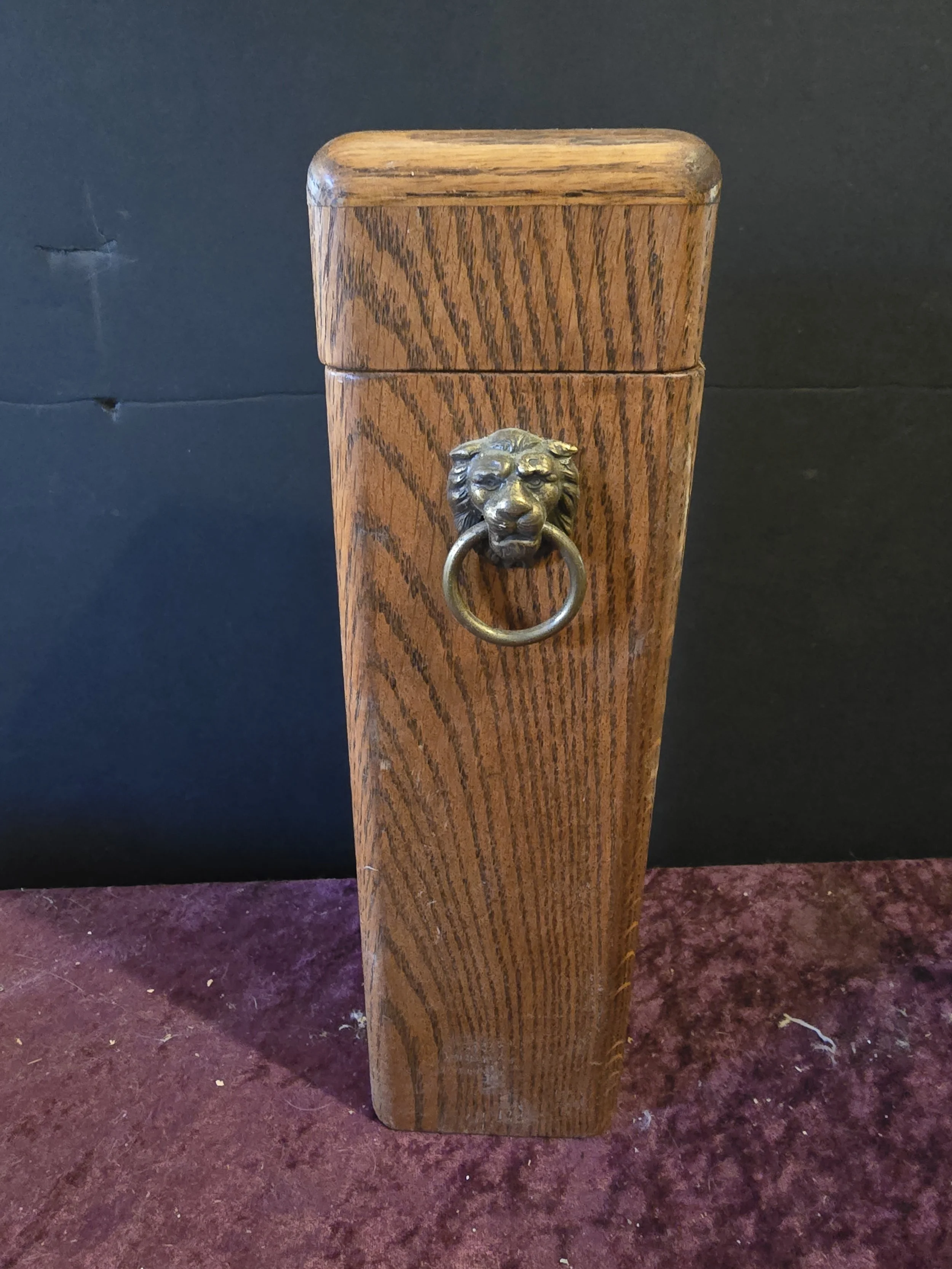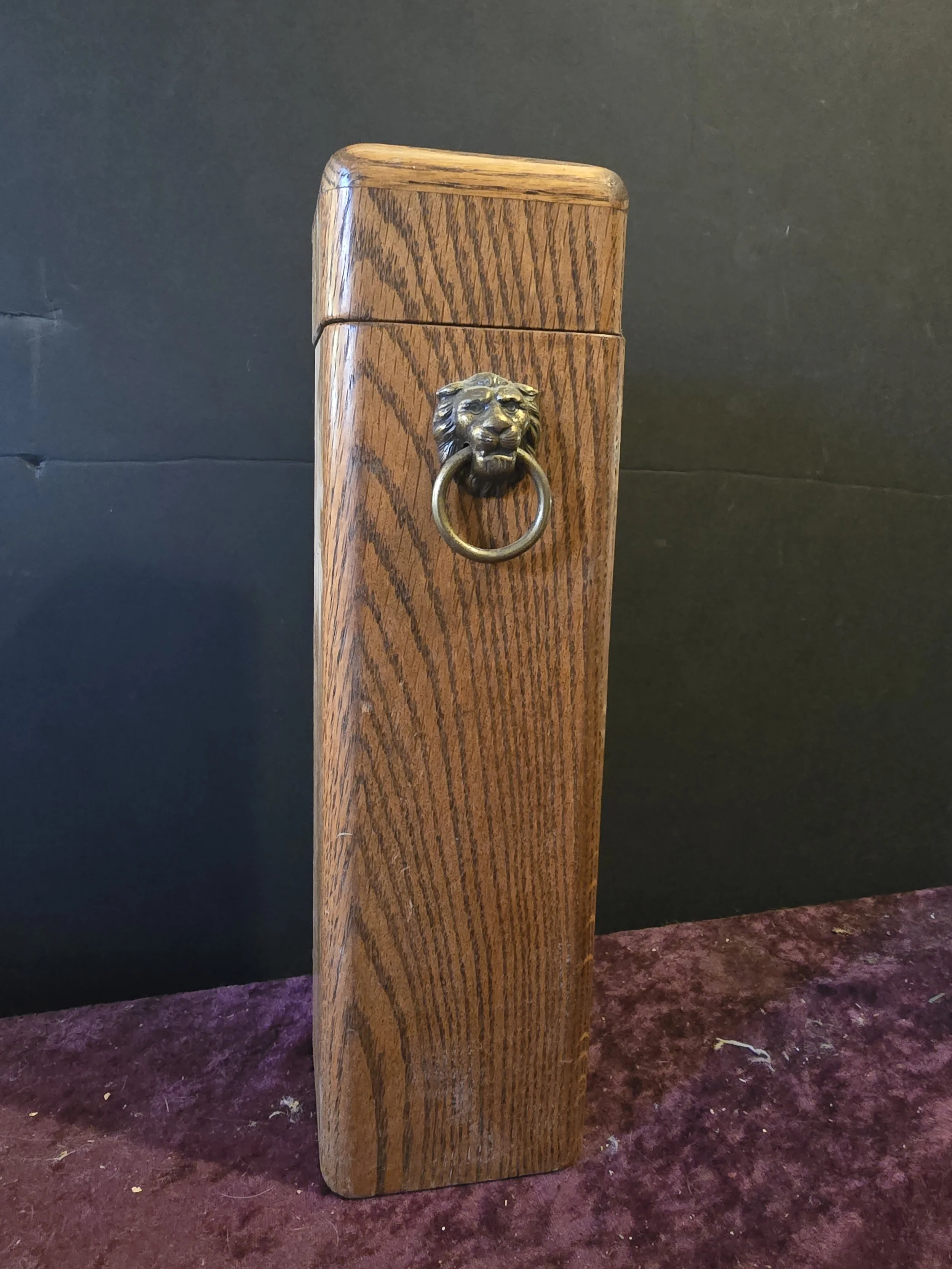 Vintage Wooden Stick Match Box with Lion Knocker Knob and Striker on the Back
