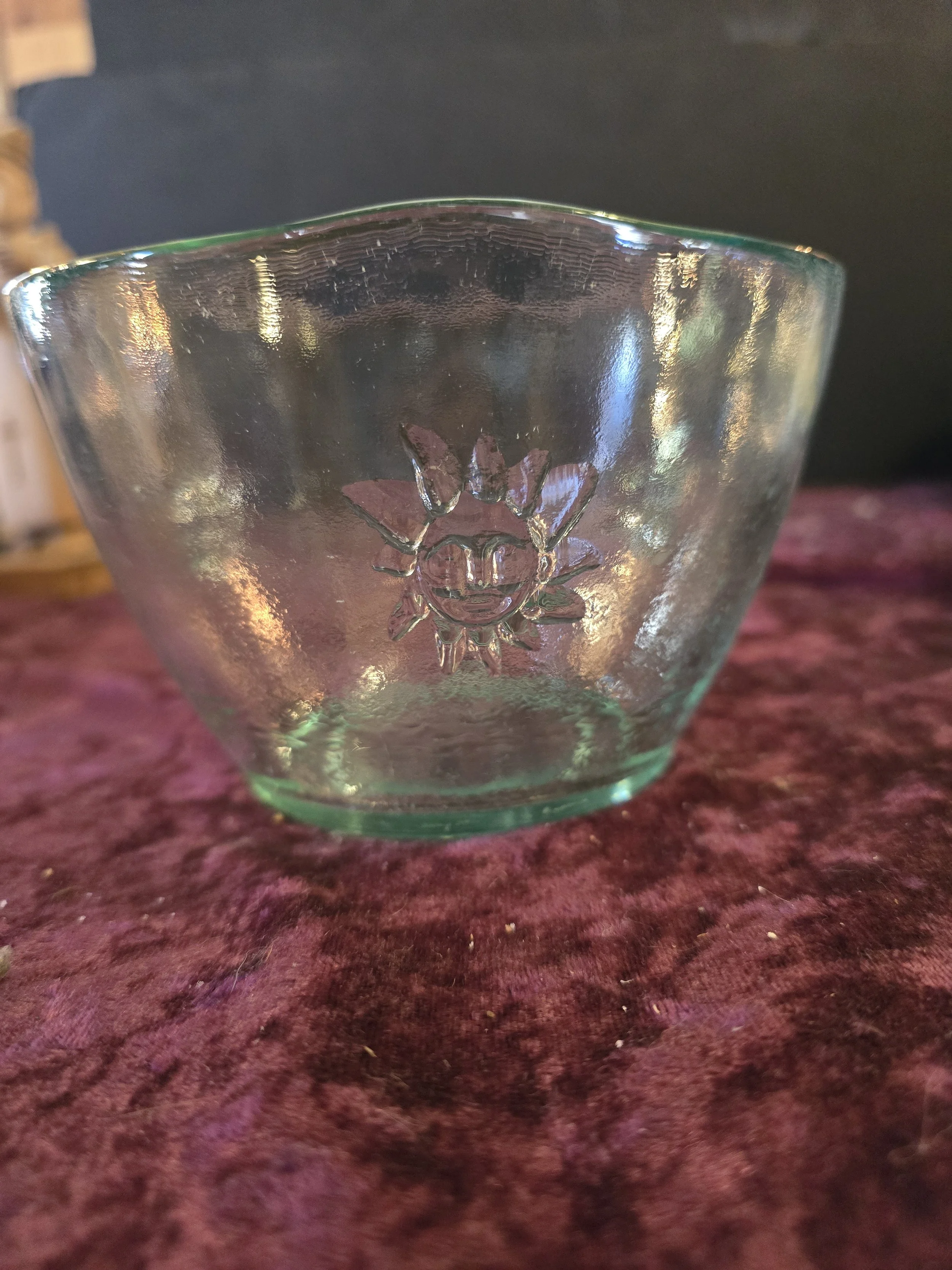Shop › Vidrios San Miguel Green Tinted Bowl Image 1 of 4 Image 2 of 4 Image 3 of 4 Image 4 of 4 Vidrios San Miguel Green Tinted Bowl $18.00 Vidrios San Miguel Green Tinted Glass Embossed Sun Face Bowl Hand Made in Spain. Bowl is 5 3/8” diameter x 3.5” tall Add To Cart Added! Vidrios San Miguel Green Tinted Glass Embossed Sun Face Bowl Hand Made in Spain. Bowl is 5 3/8” diameter x 3.5” tall You Might Also Like Quick View Jeanette Floragold Marigold Footed Dish $12.00 Quick View Crystal Salt Shaker $22.00 Quick View Hall Pottery Green Teapot $22.00 Quick View Handpainted Lusterware Pitcher $22.00 Quick View Vintage Crystal Lite Green Crystal Candleholder $8.00