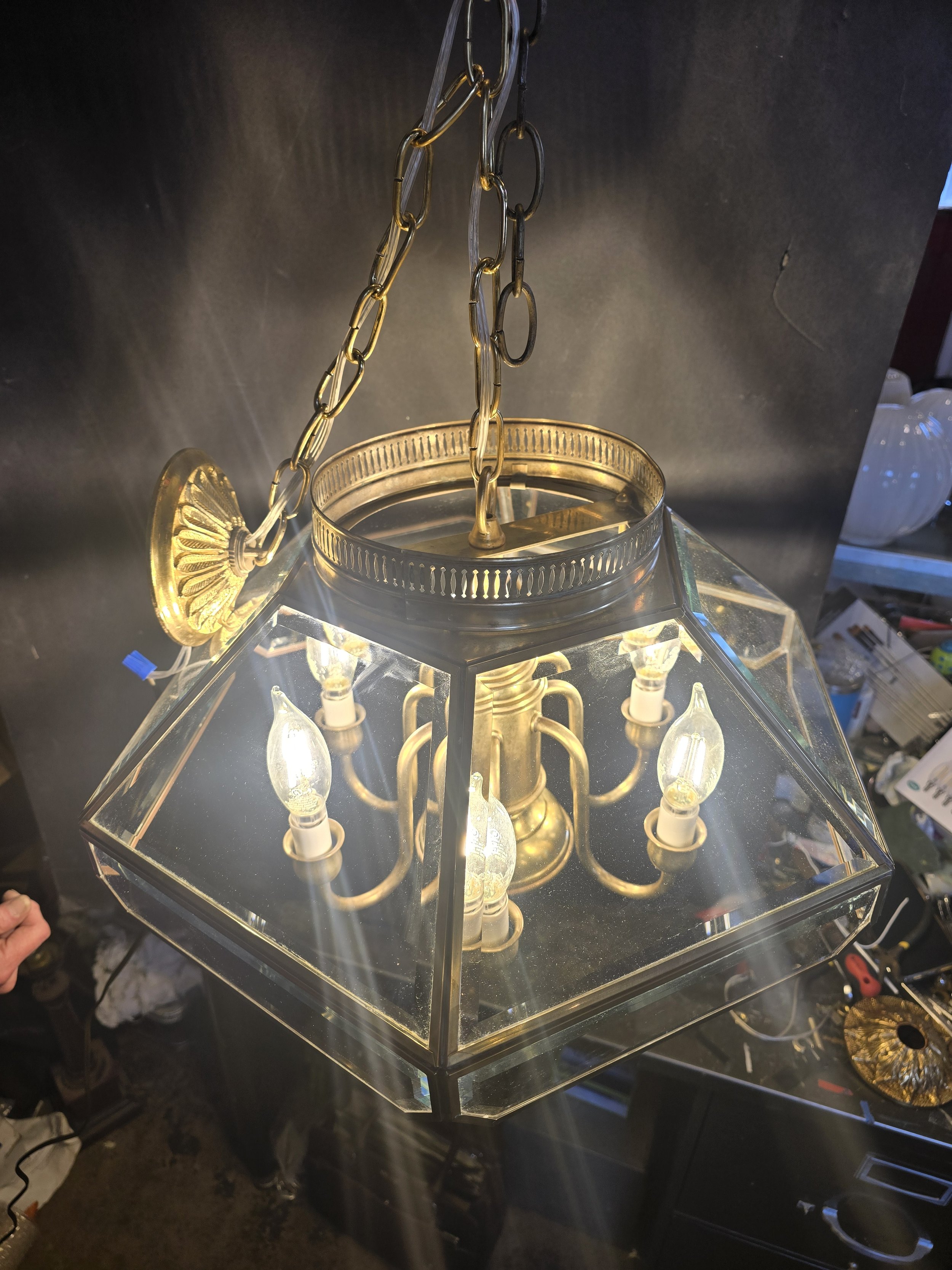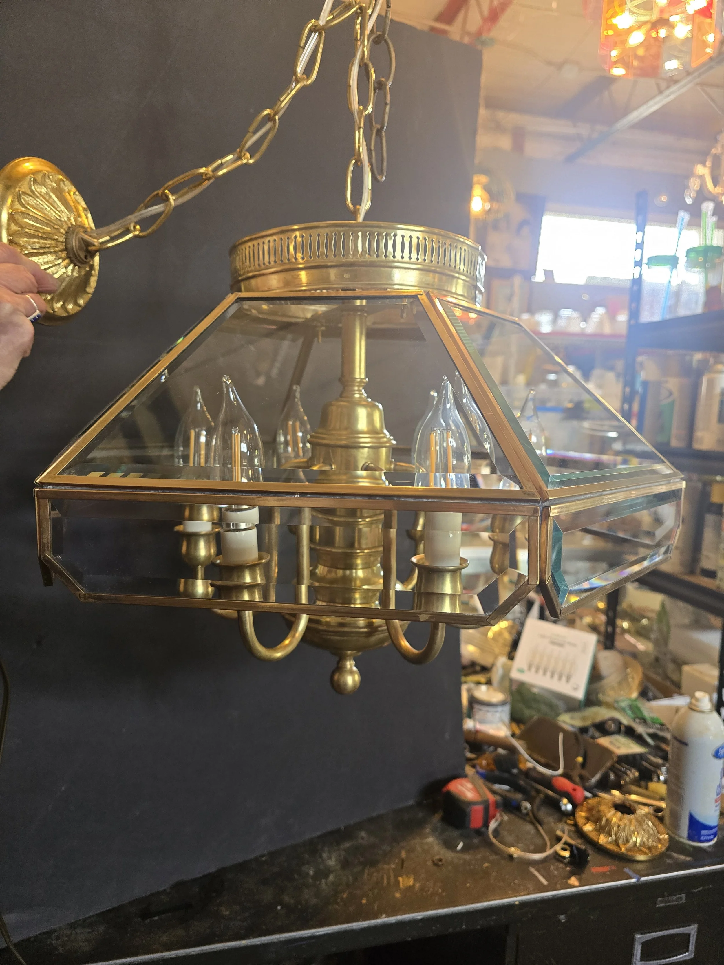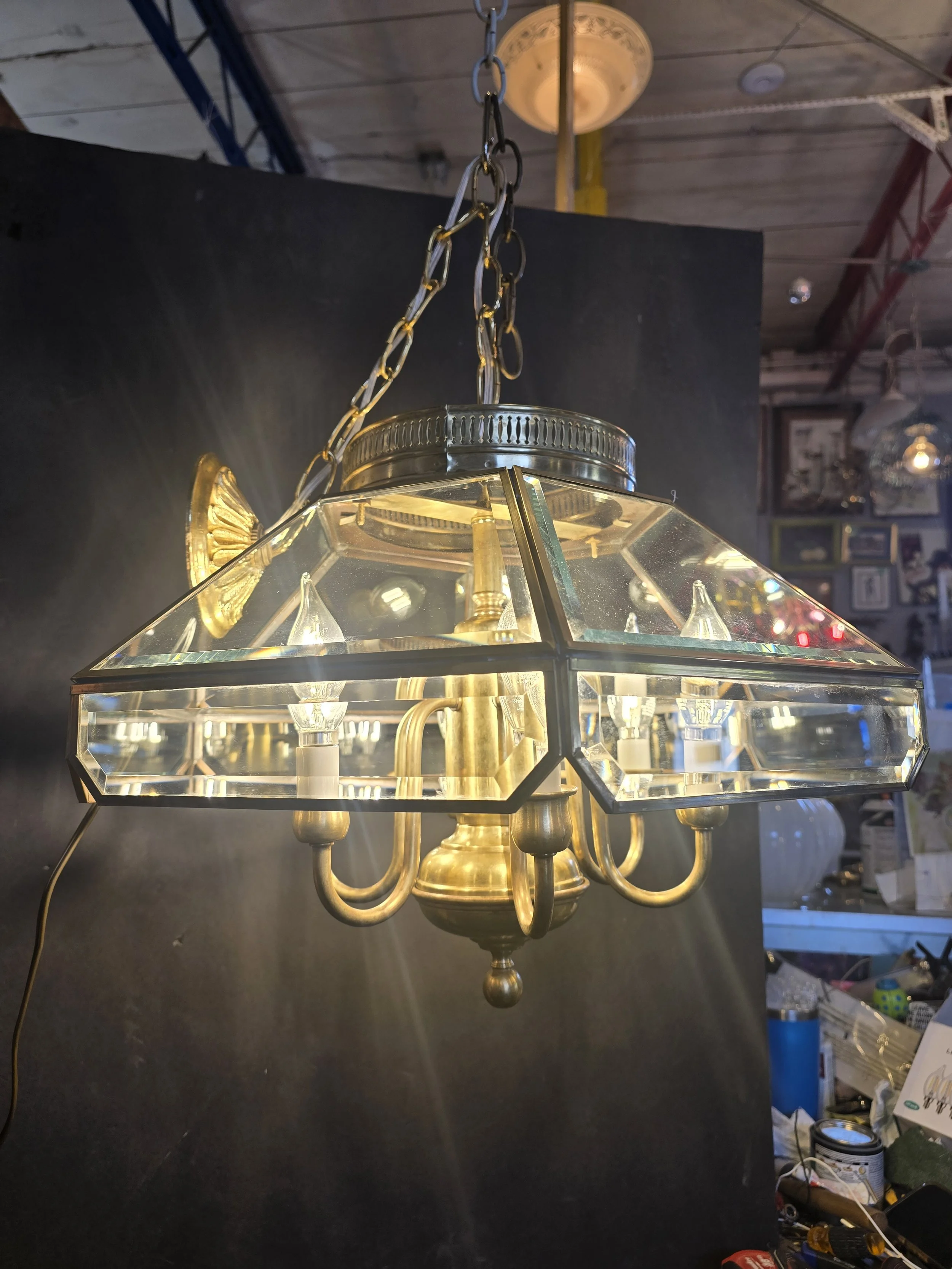 Brass Beveled Glass Chandelier