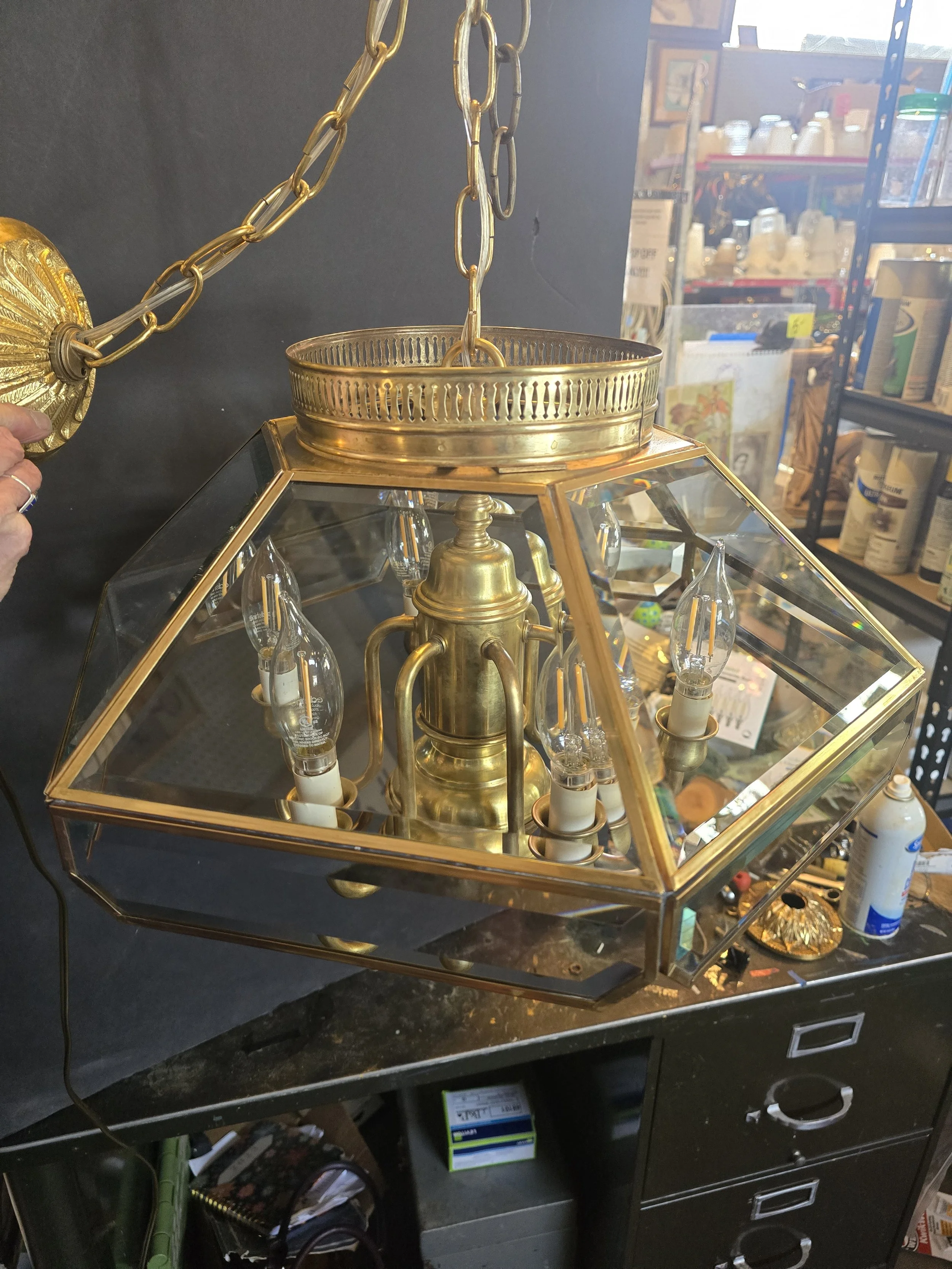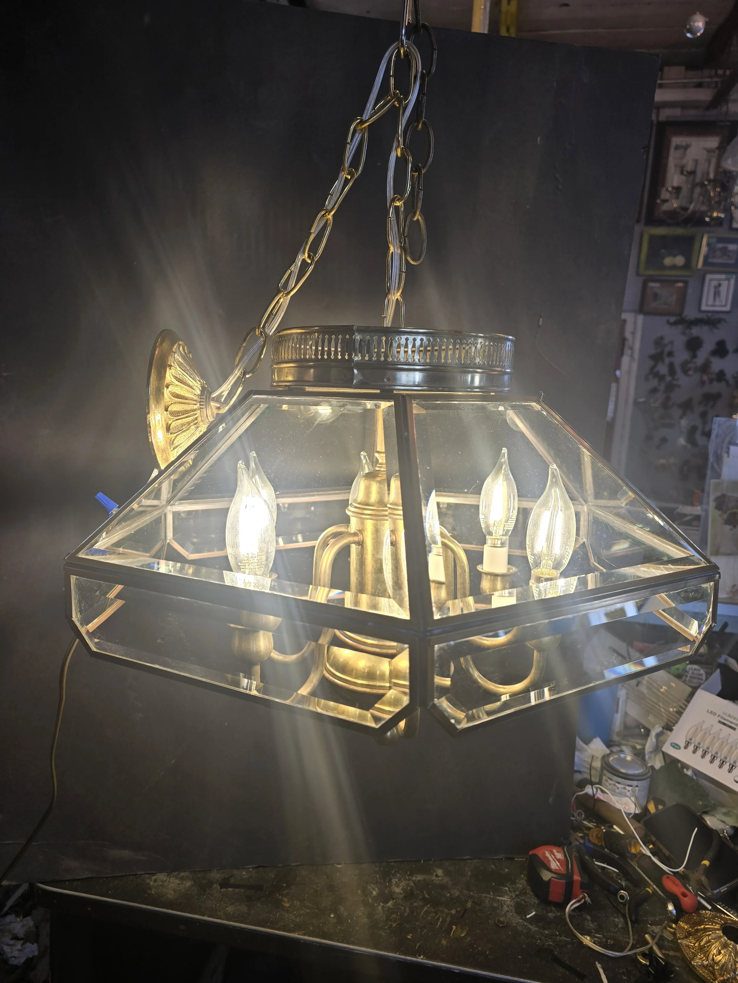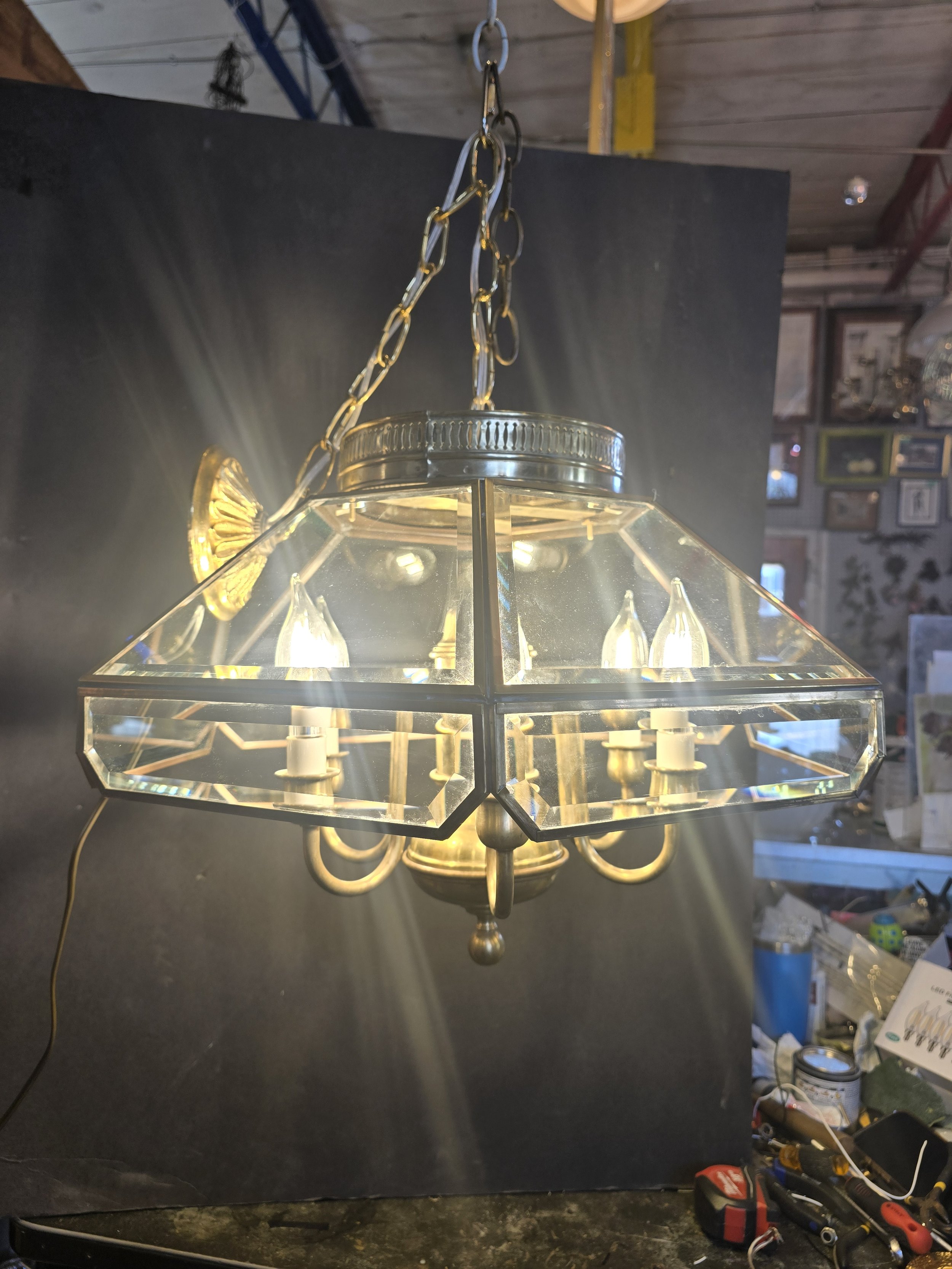 Brass Beveled Glass Chandelier
