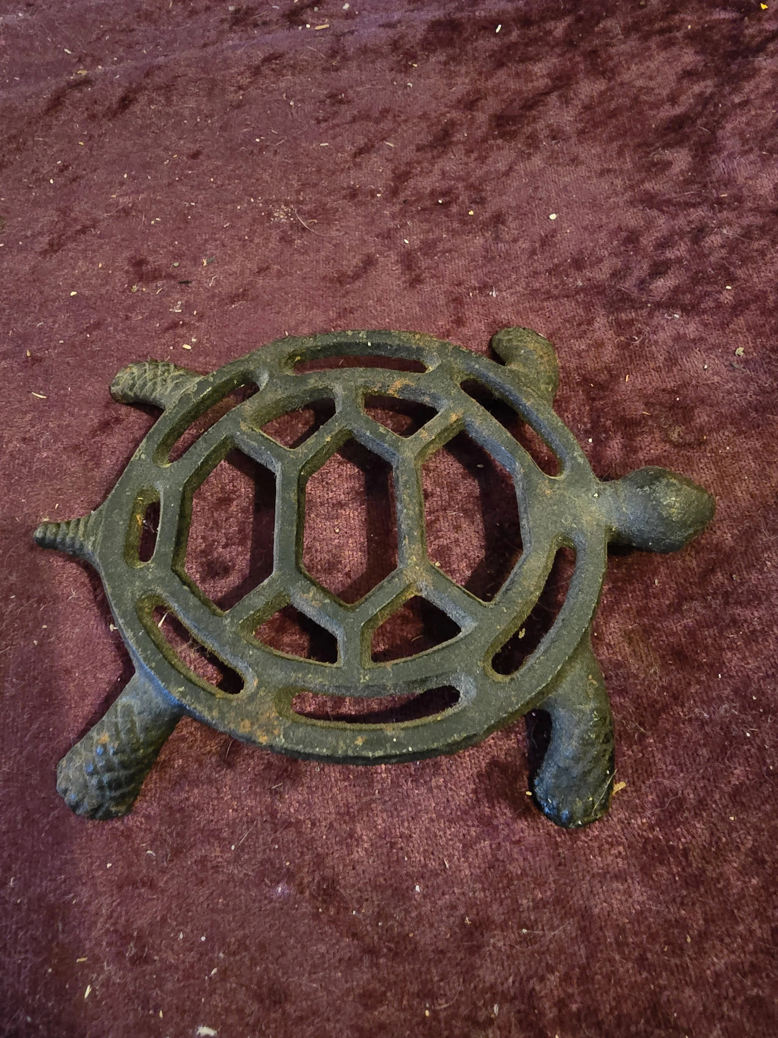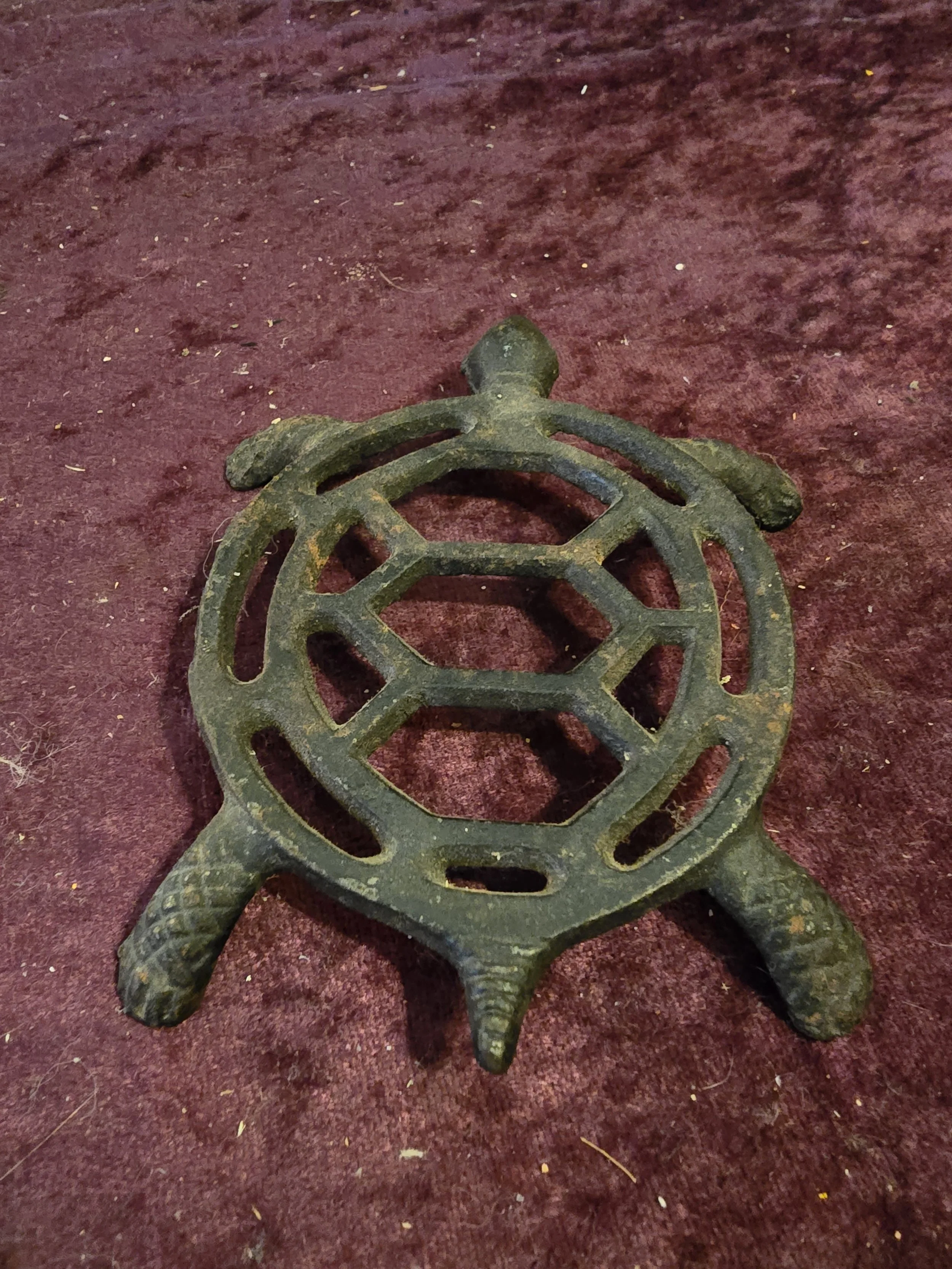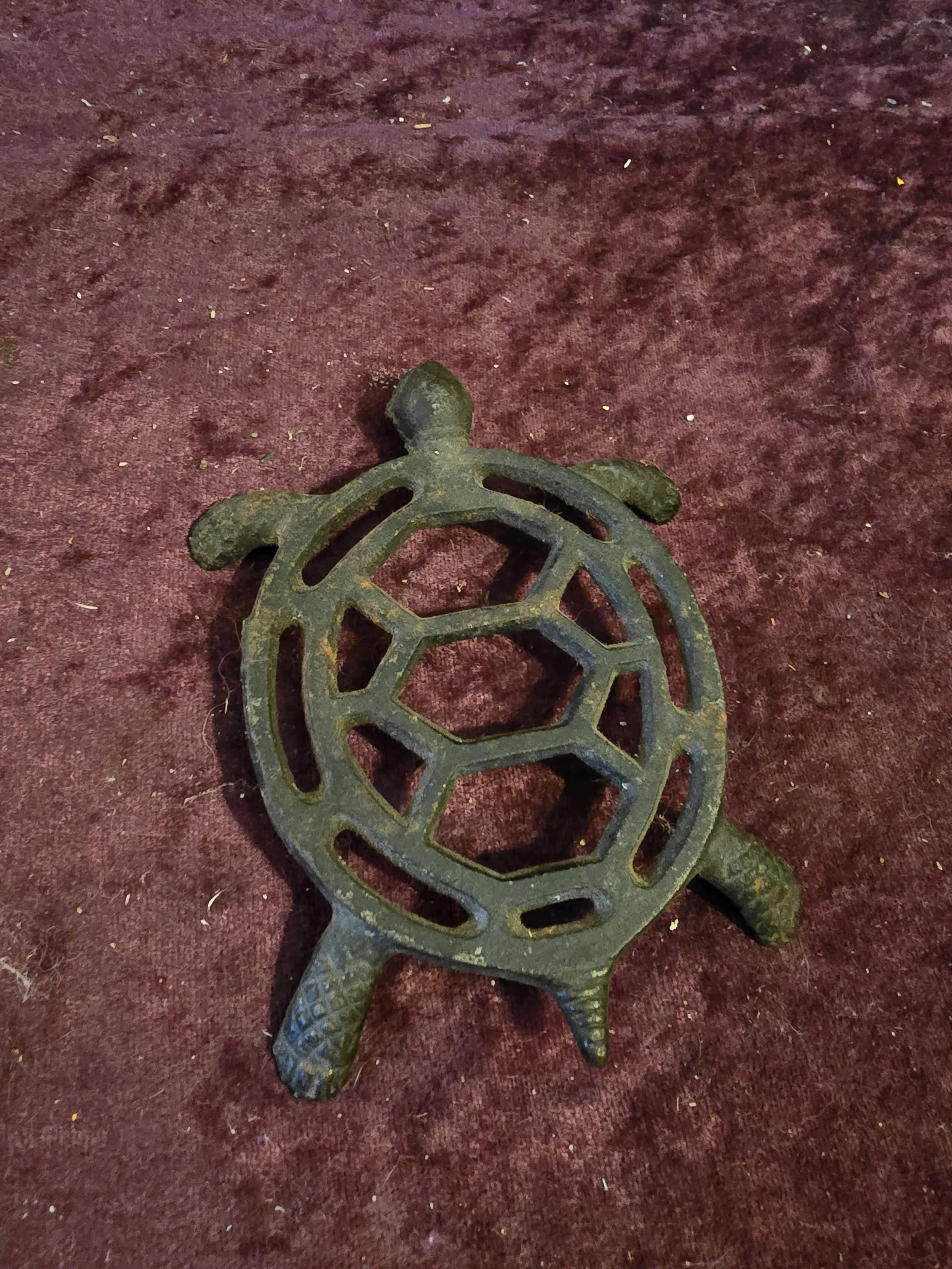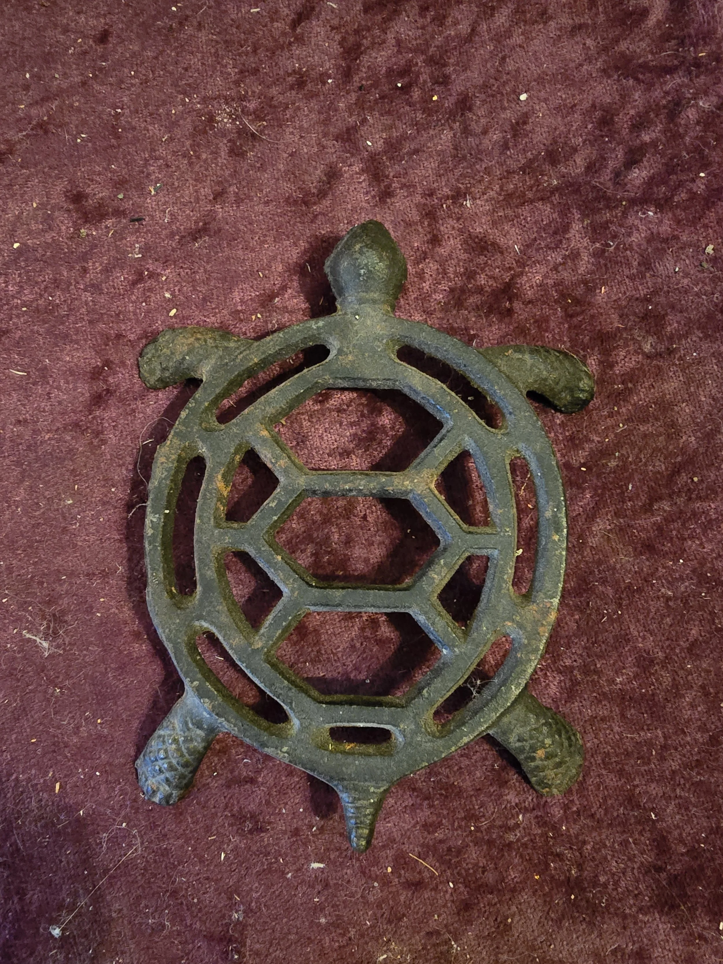 Shop › Turtle Trivet Image 1 of 5 Image 2 of 5 Image 3 of 5 Image 4 of 5 Image 5 of 5 Turtle Trivet $12.00 Iron turtle trivet Trivet is 3.75” x 4 5/8” Add To Cart Added! Iron turtle trivet Trivet is 3.75” x 4 5/8”