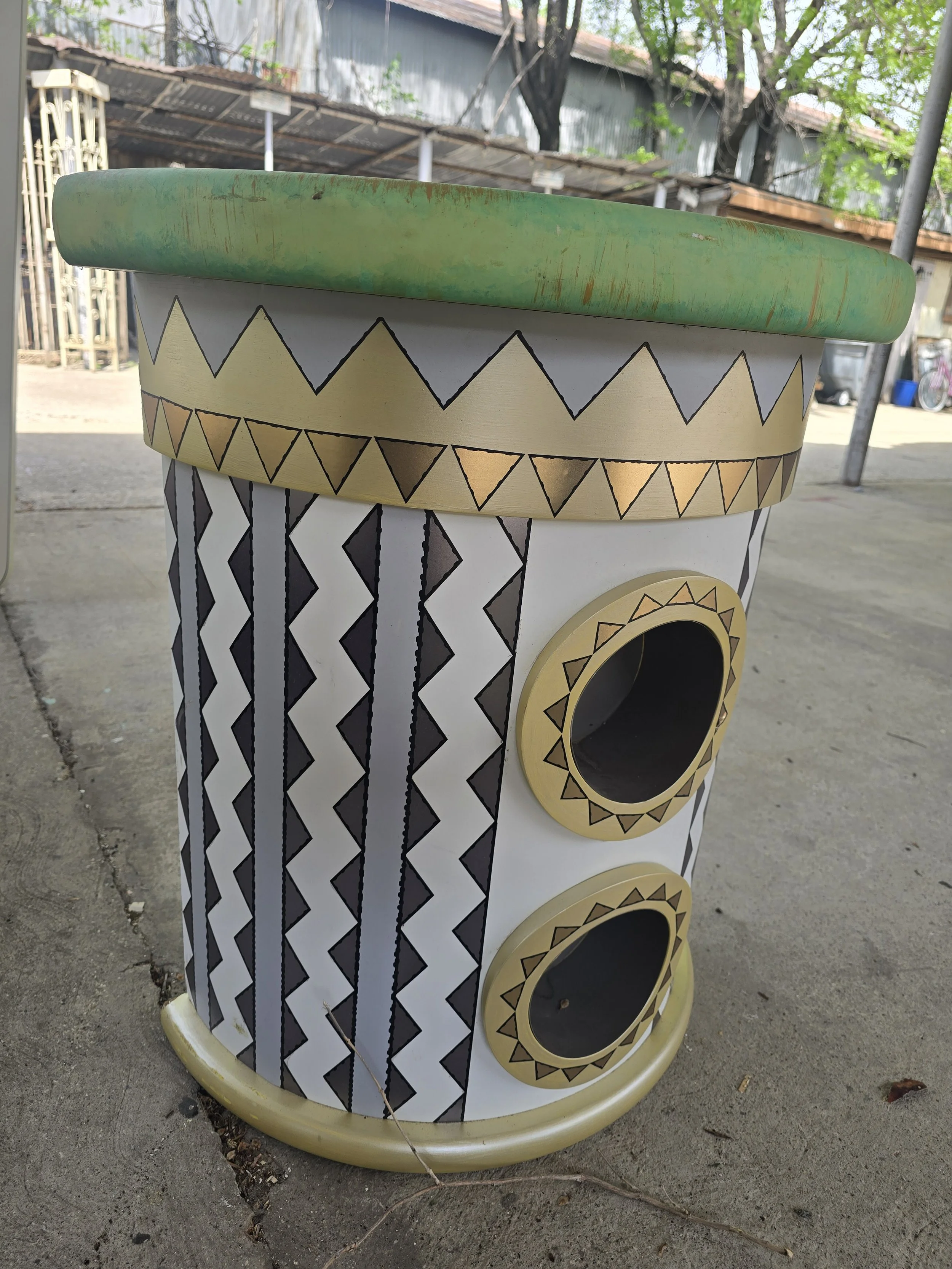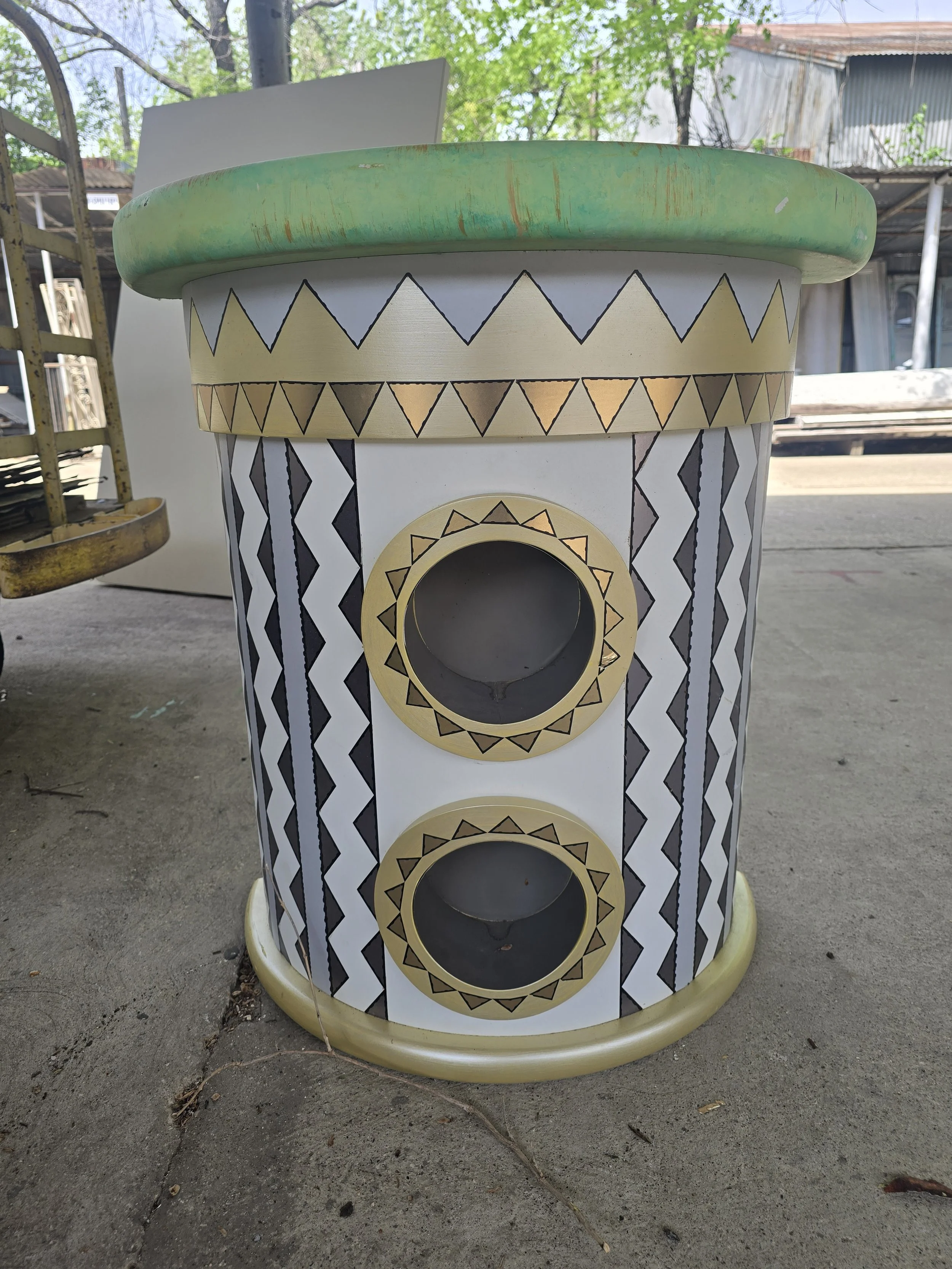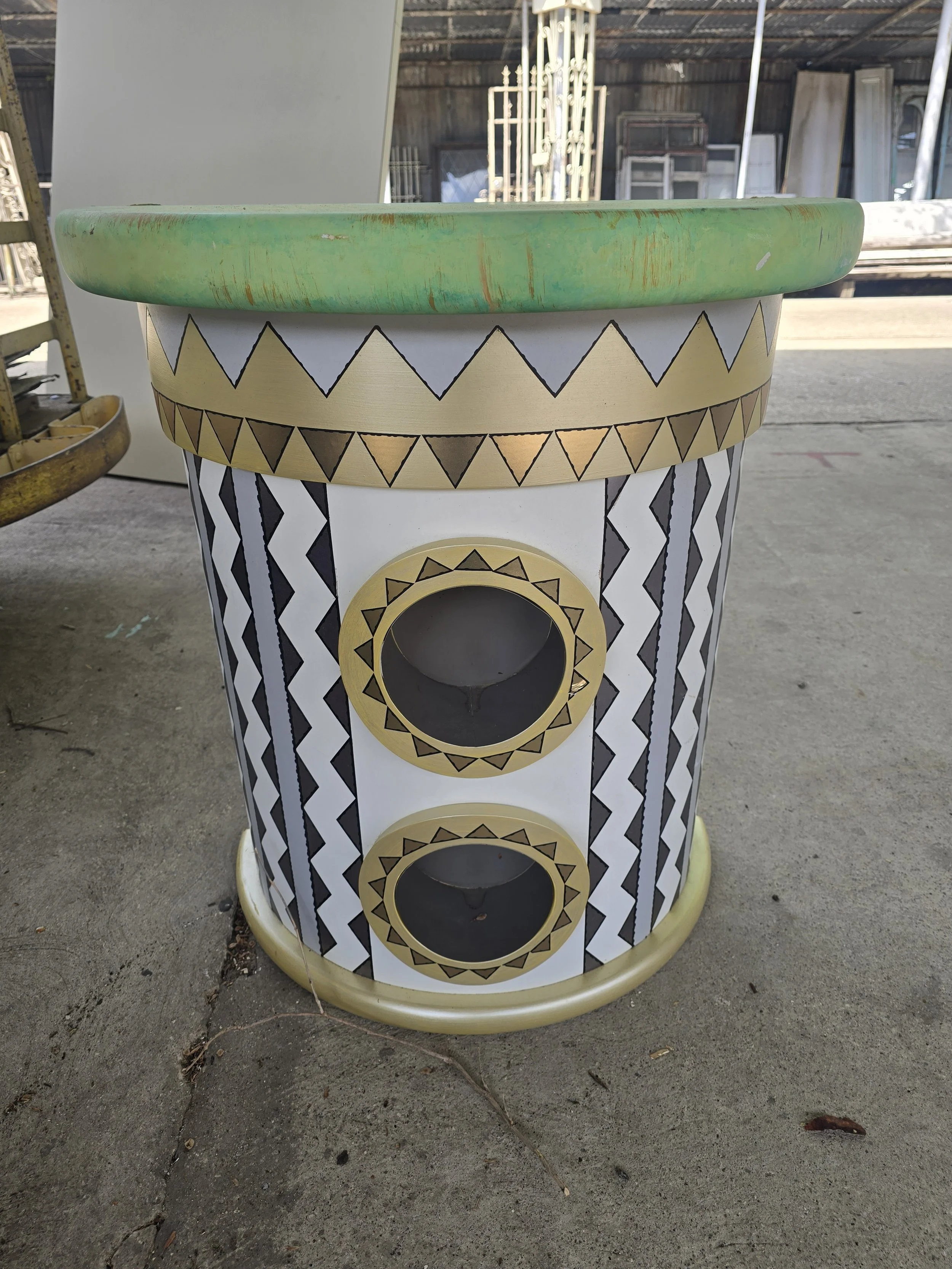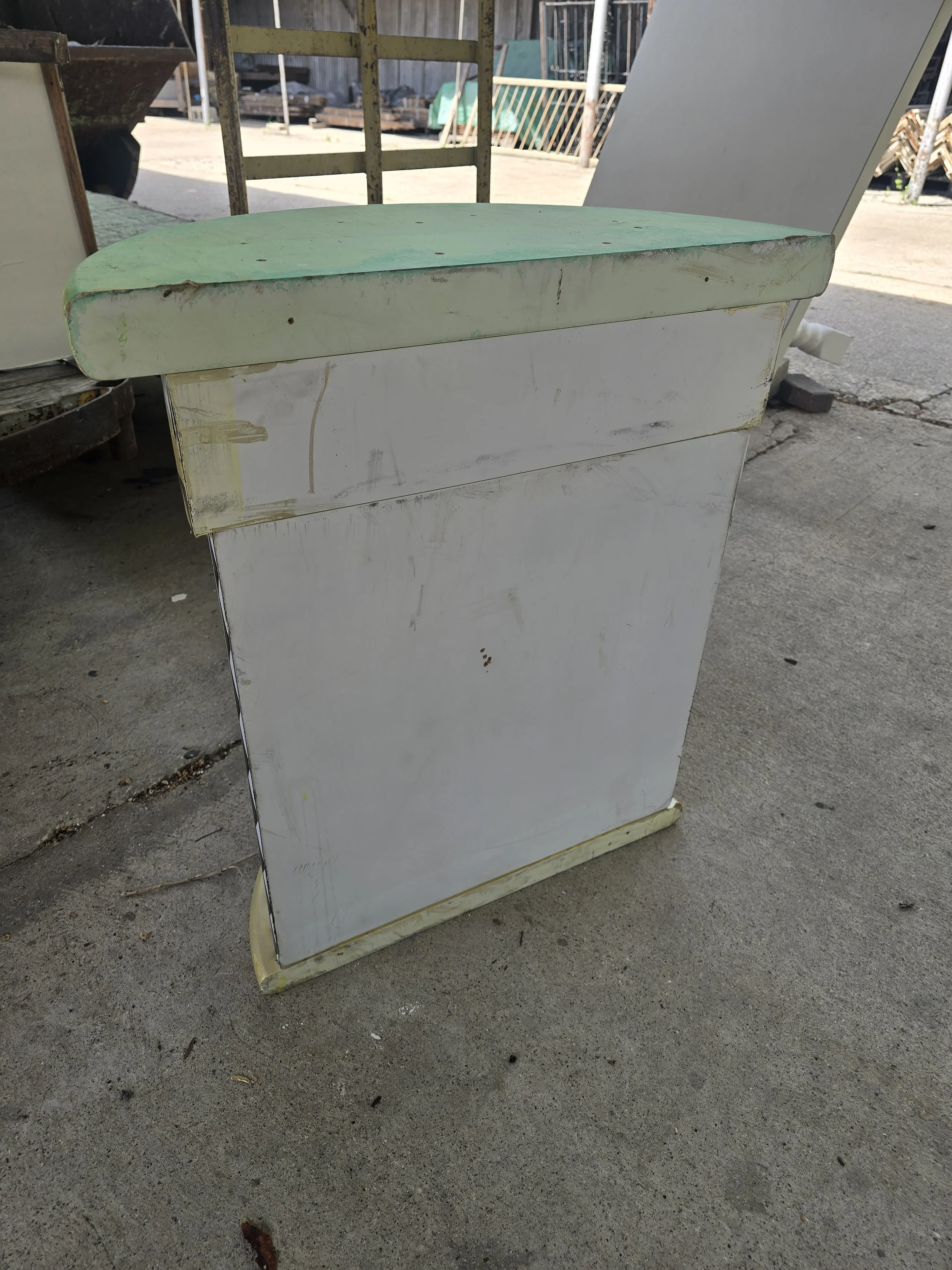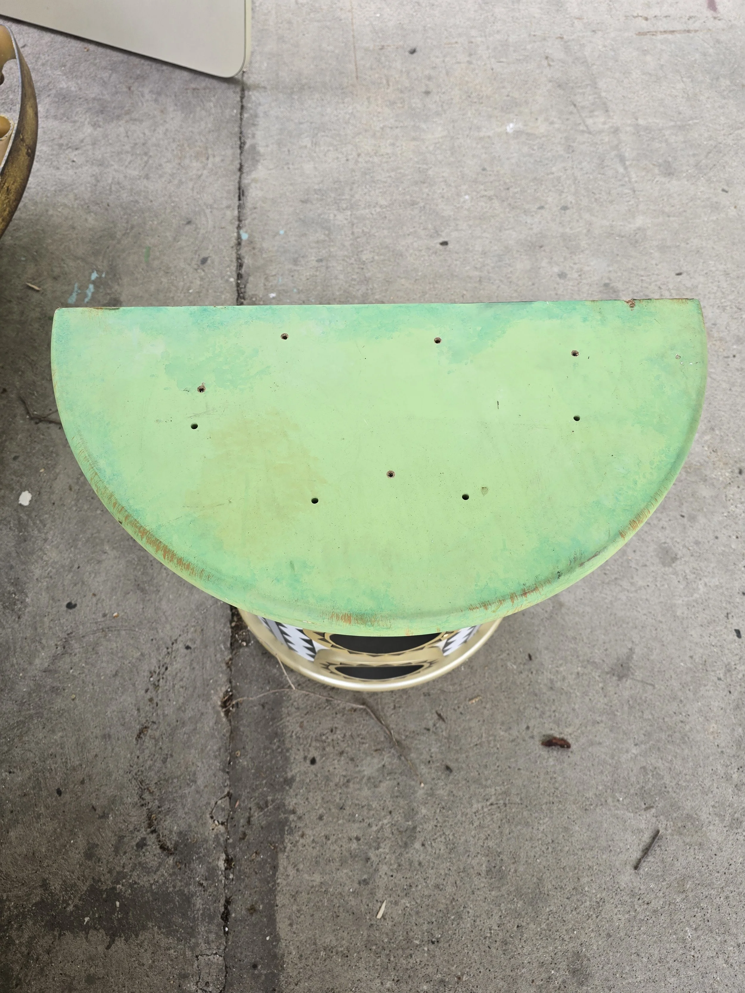 This half circle base is eye catching. I am not sure what it was used for, but it looks cool. The top has some holes where it is screwed together.