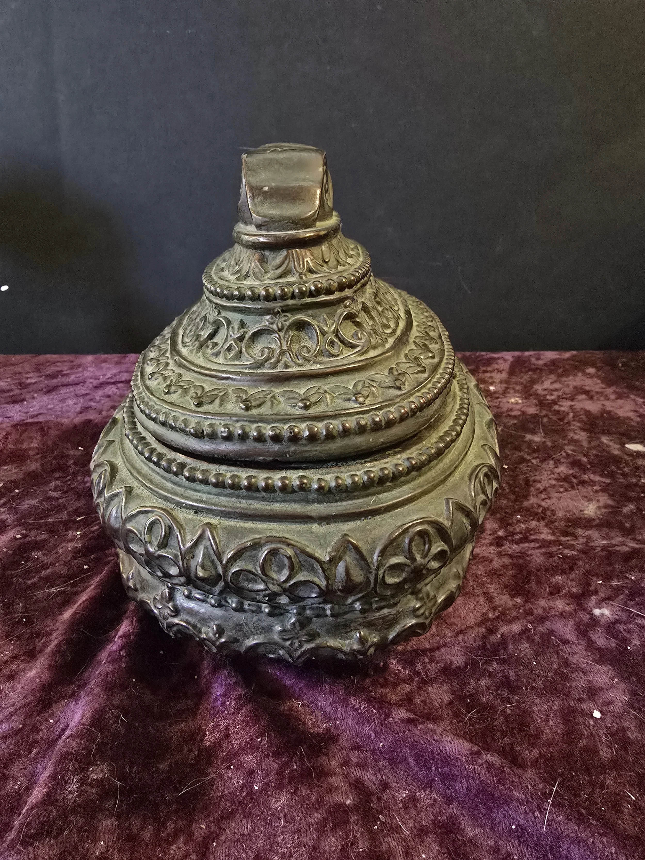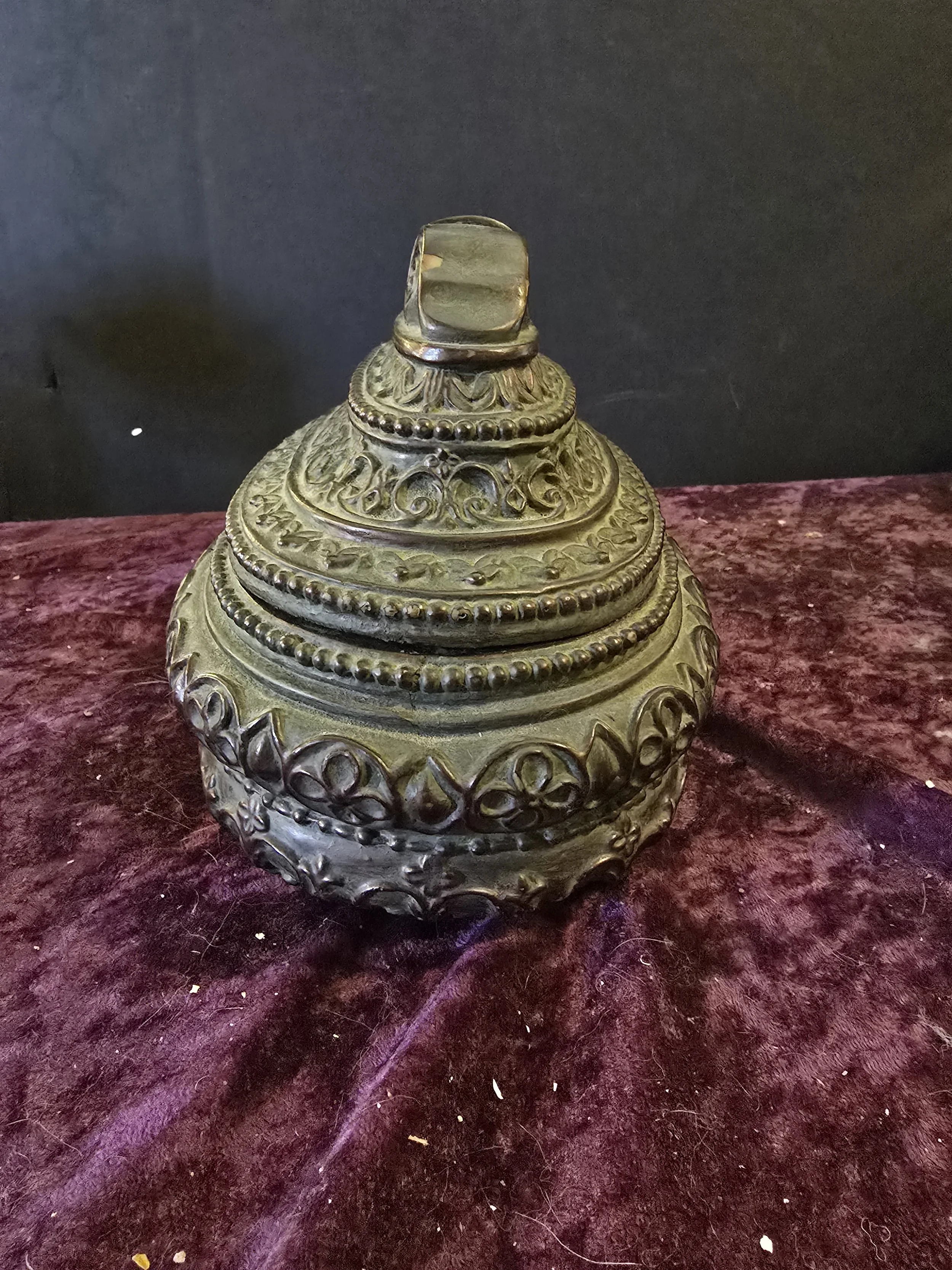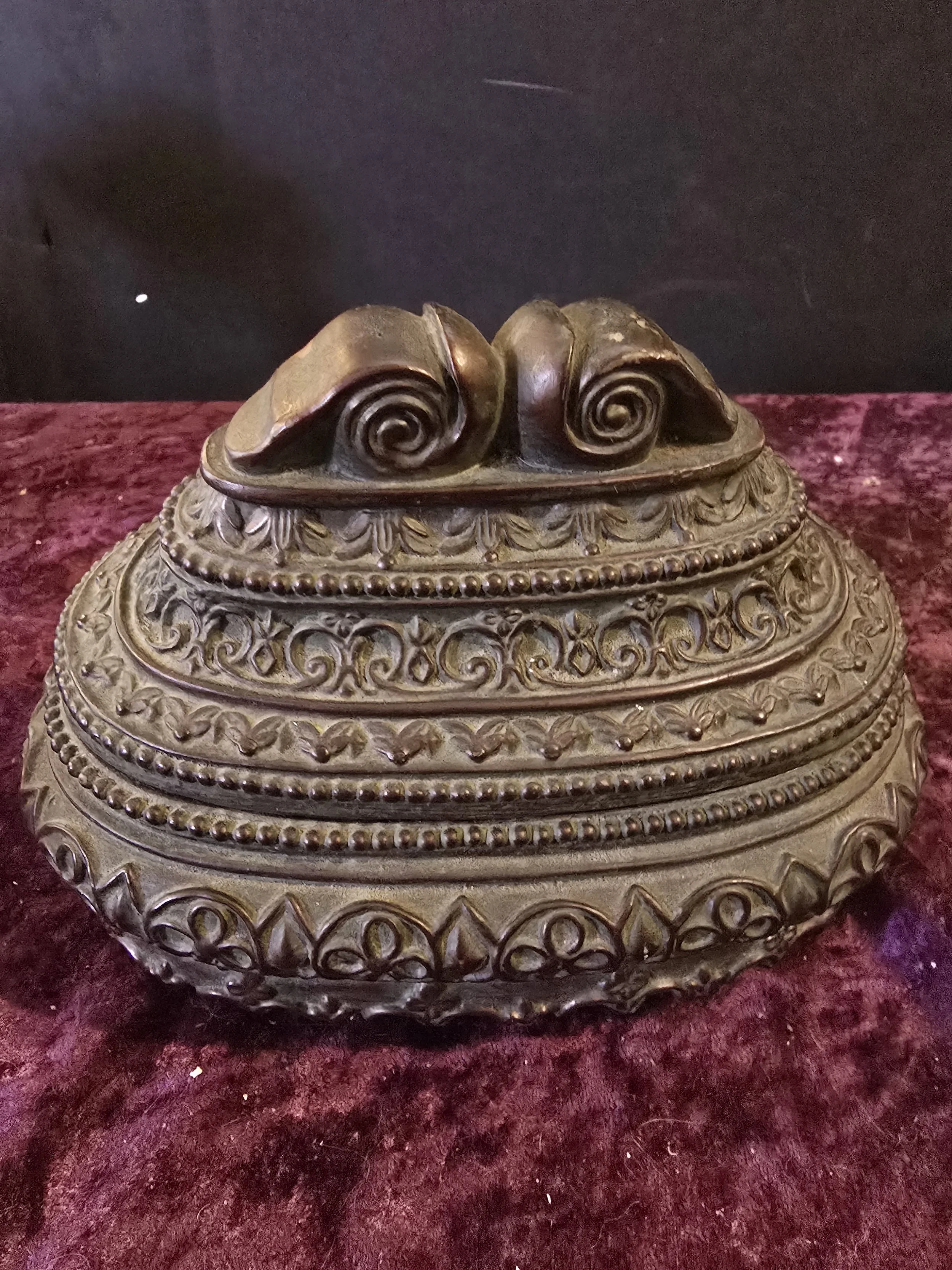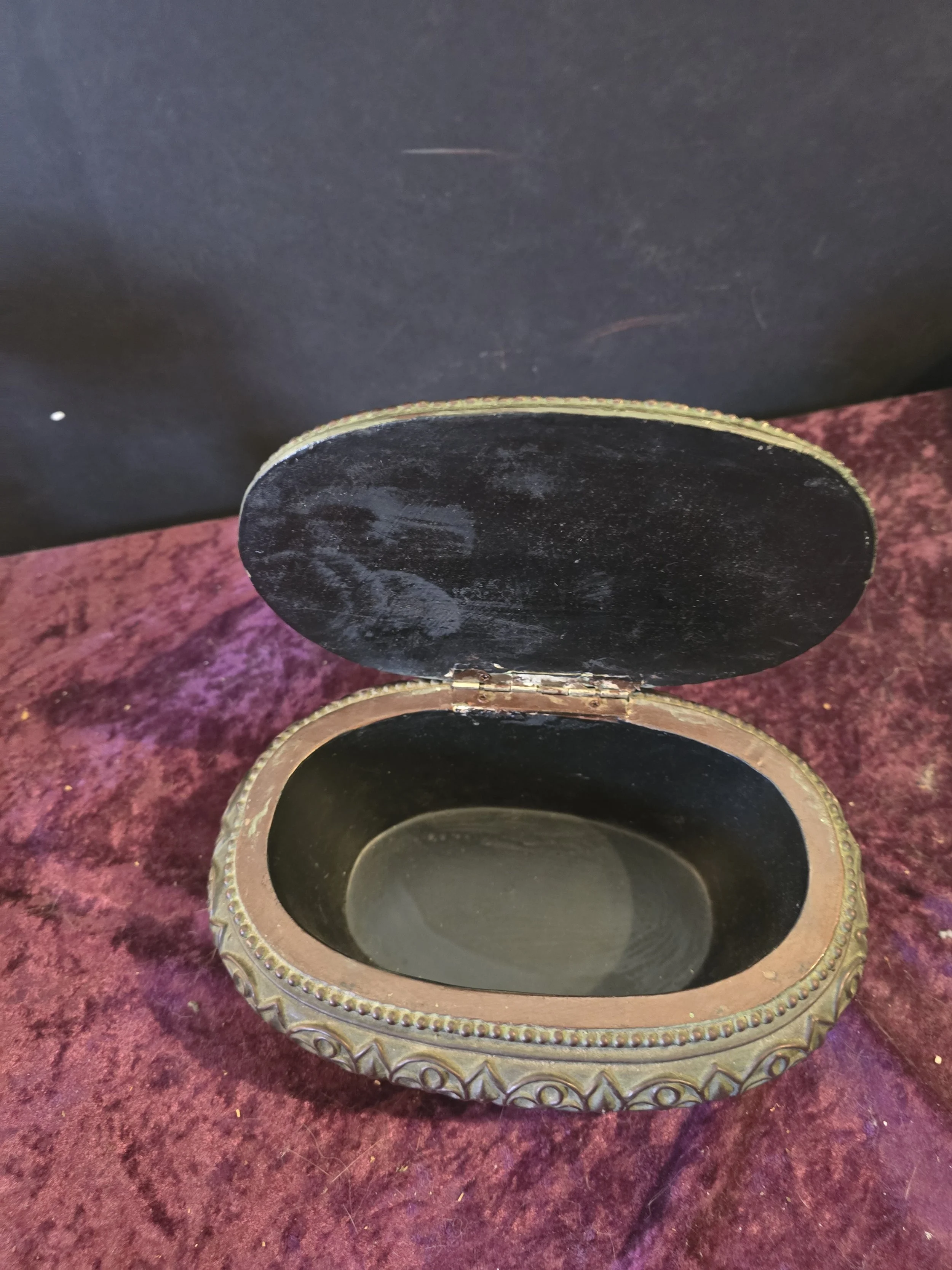 Ornamental oval shaped box. I feel like its mean to look old, but I am not convinced it is.