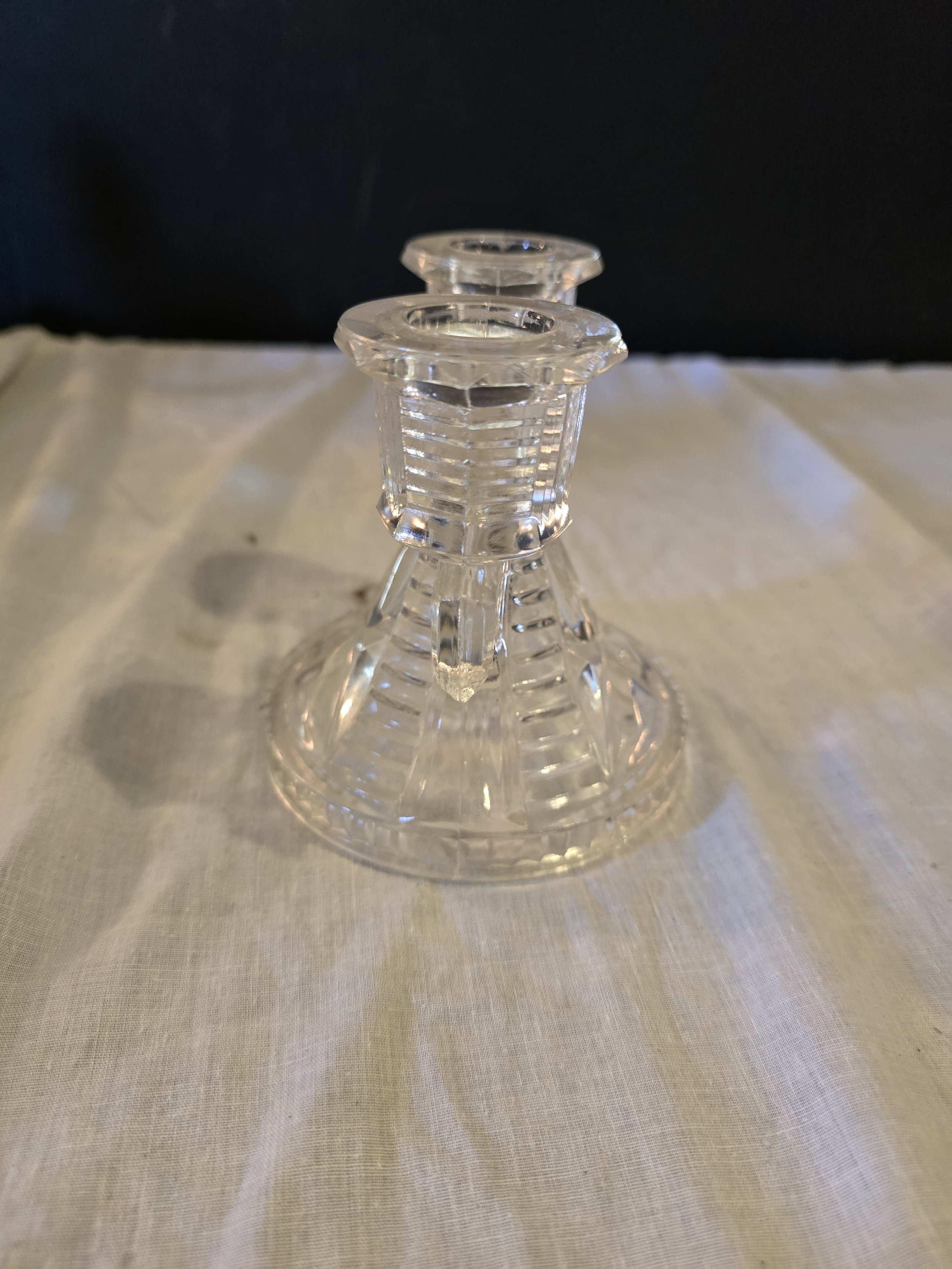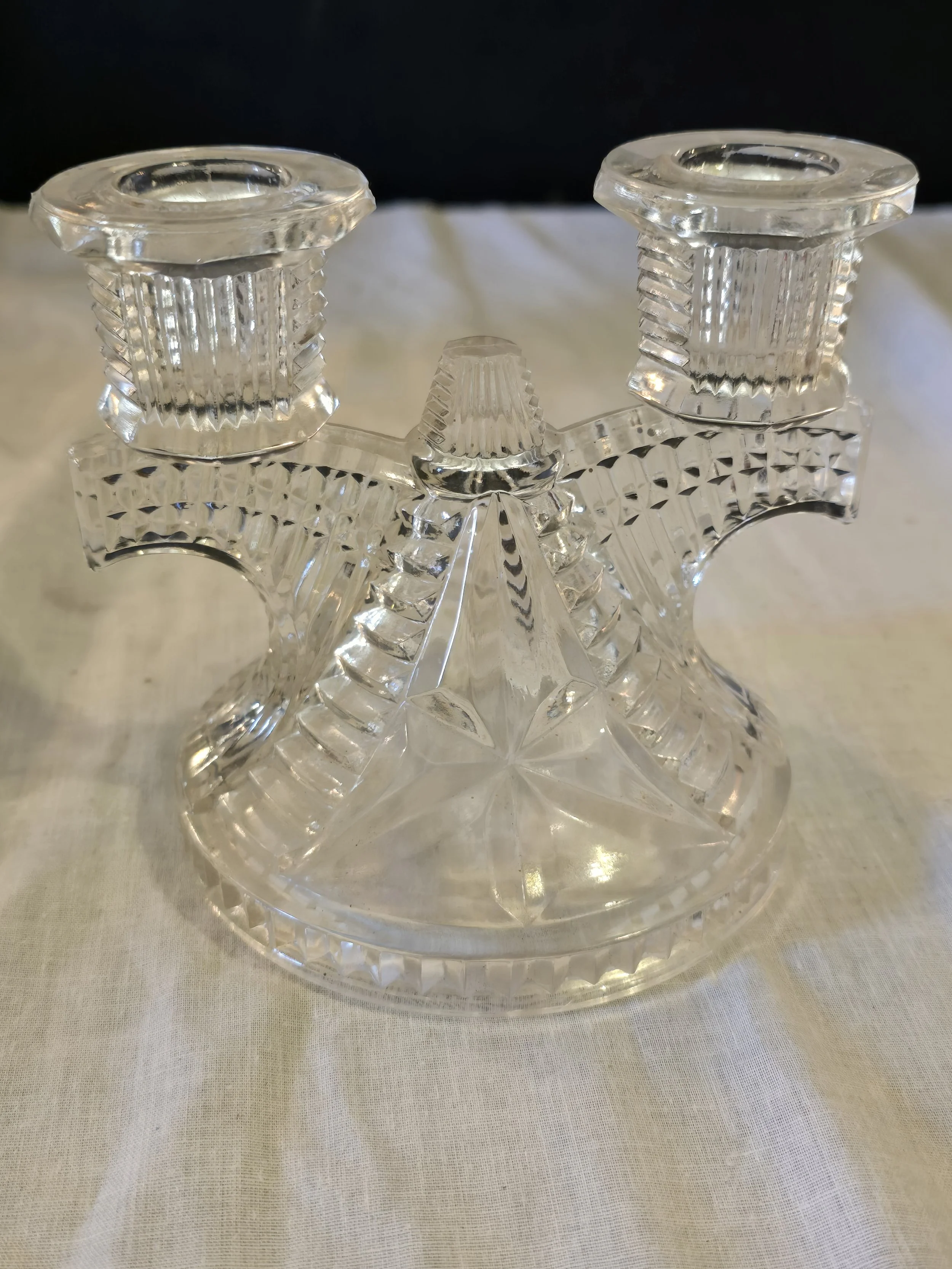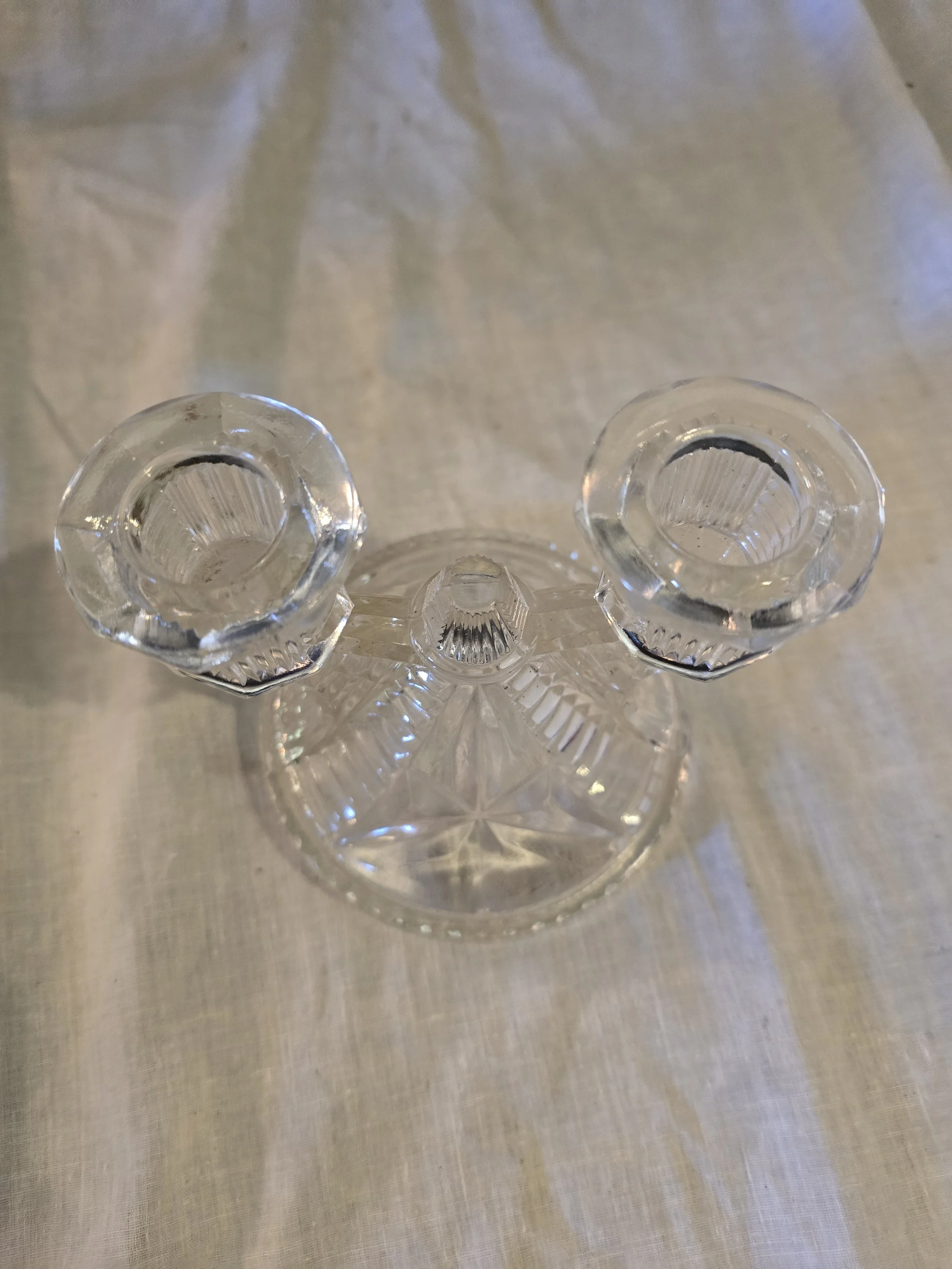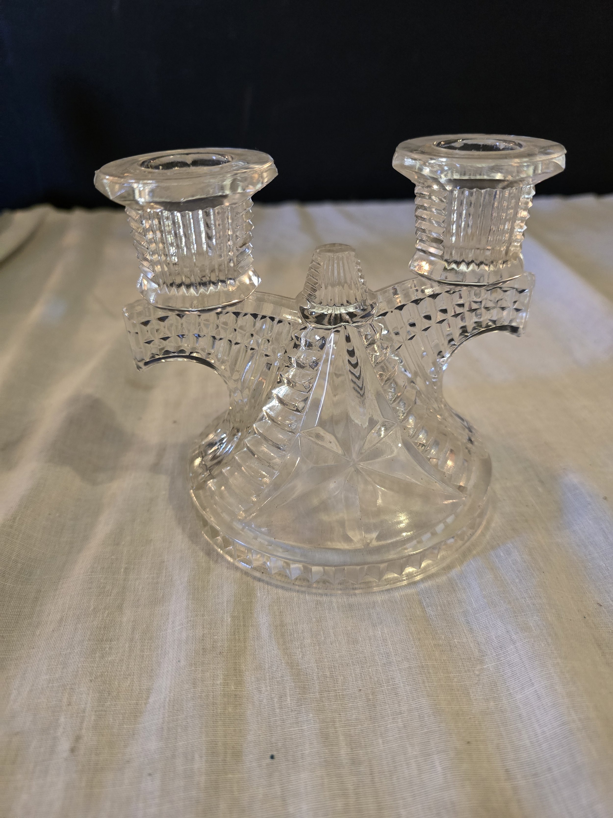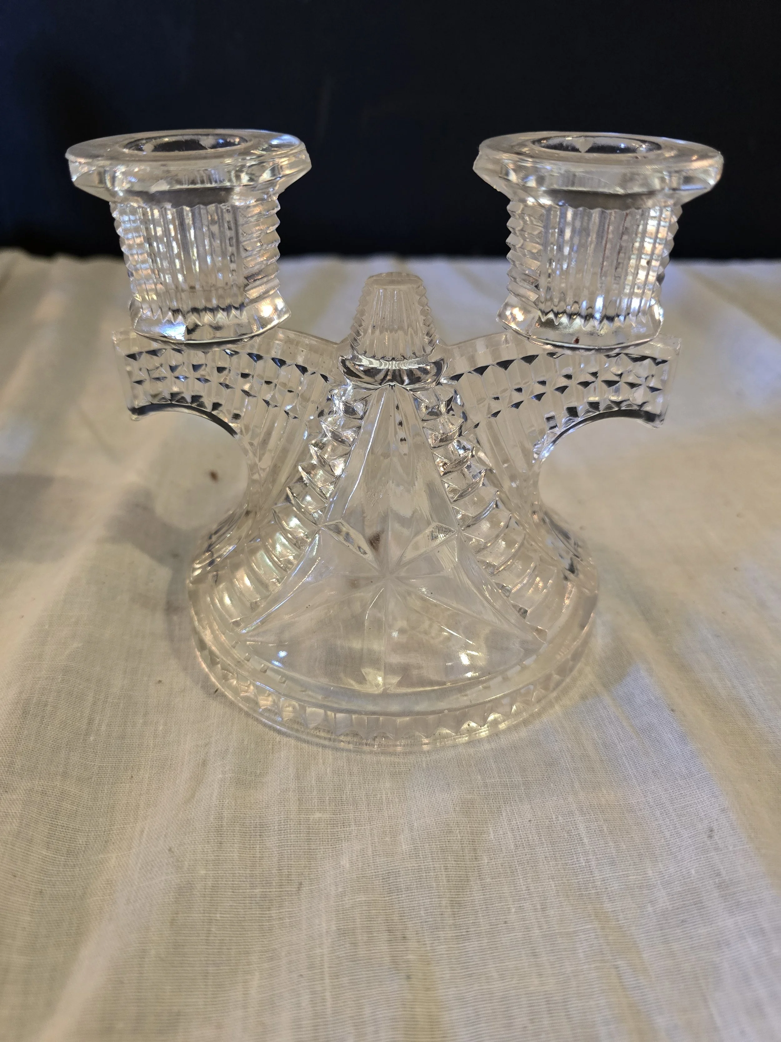 Federal Glass Wigwam clear glass double candle holder. In excellent condition
