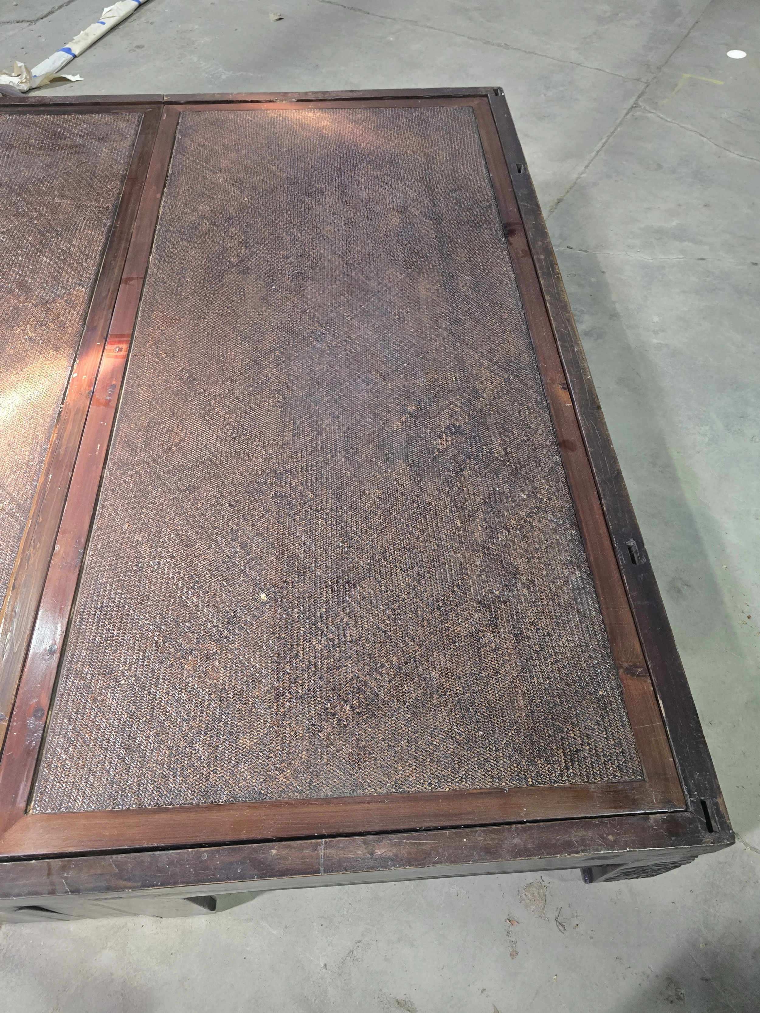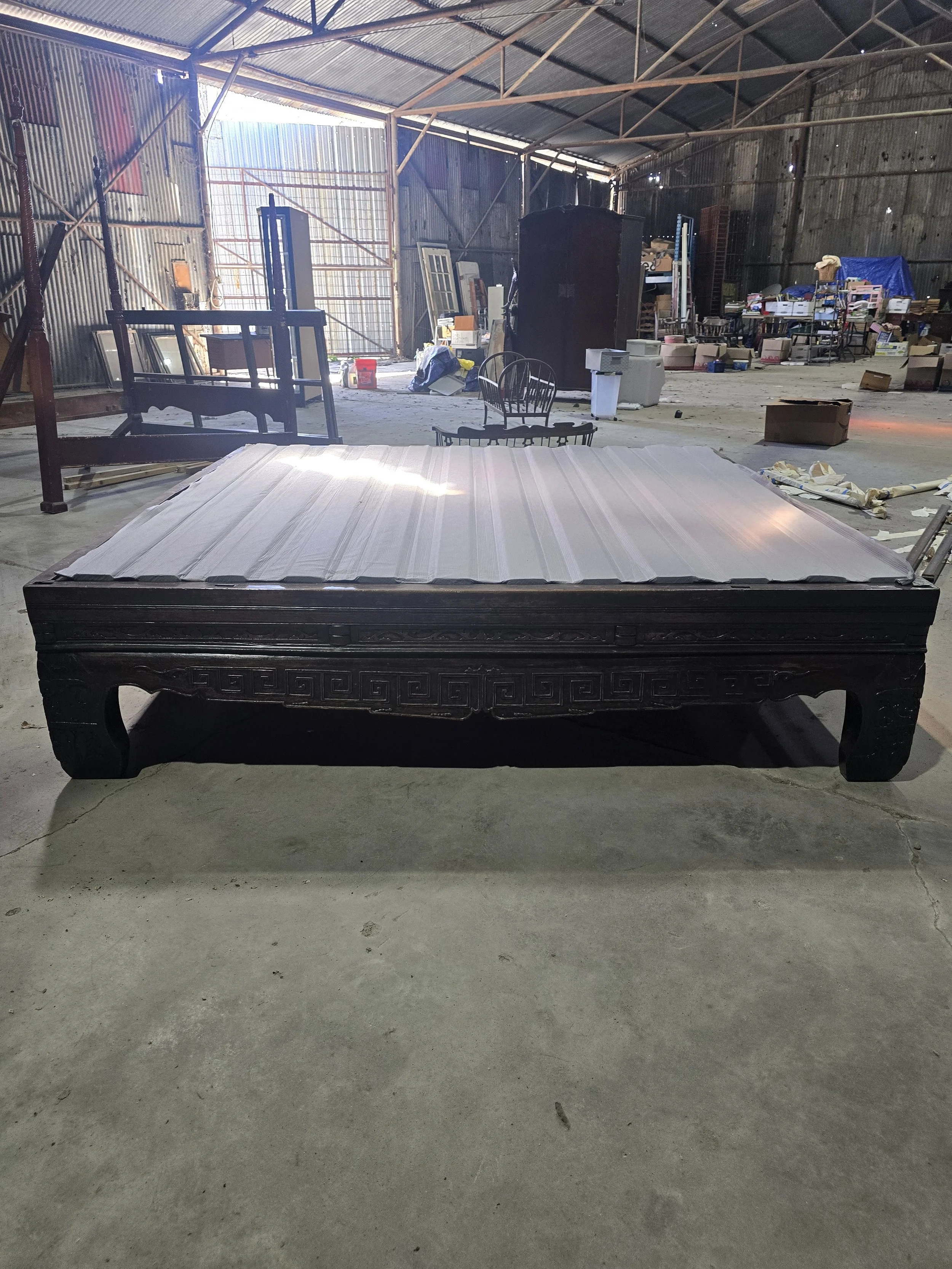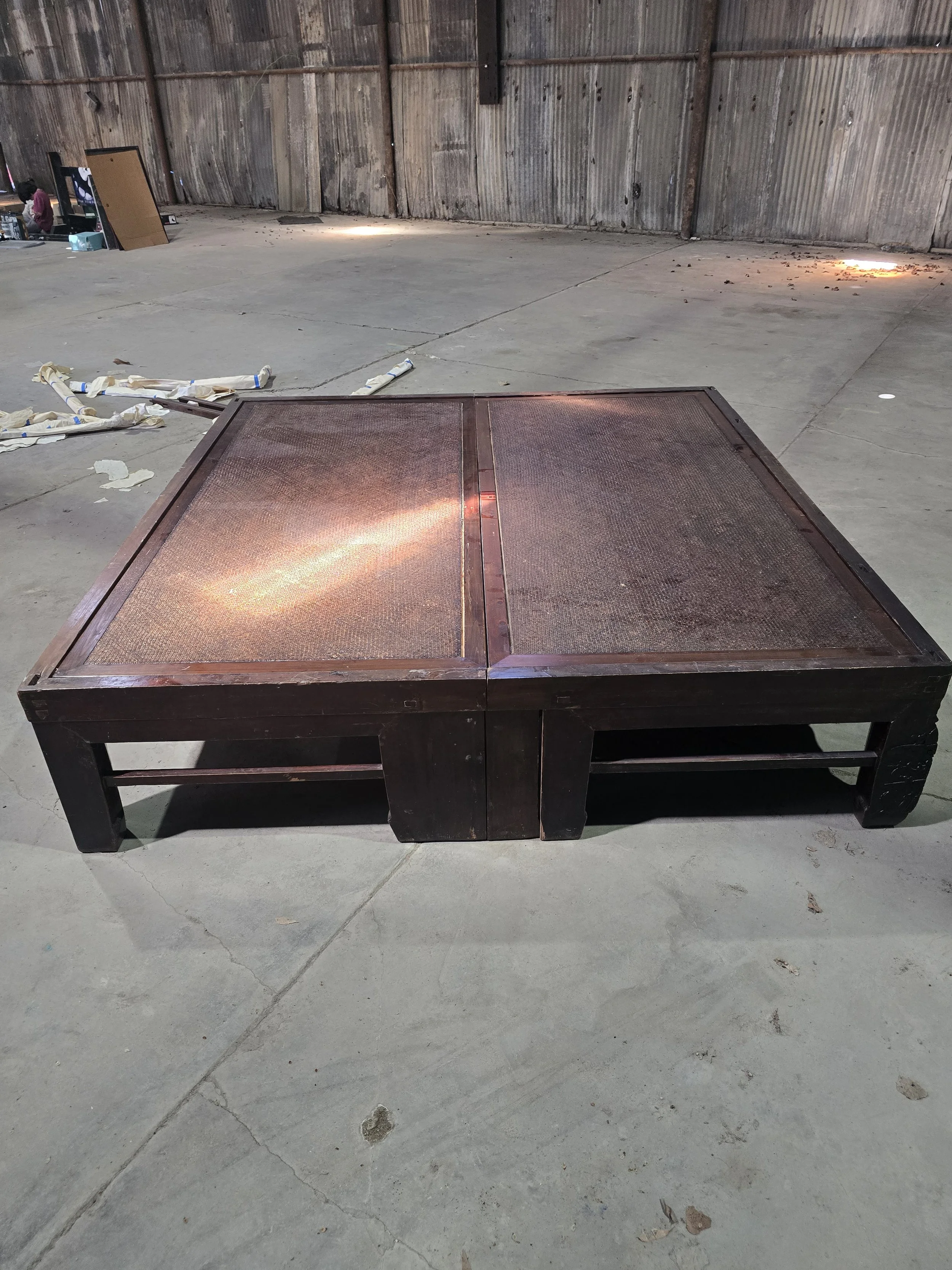 Asian style opium bed. It is not complete. The base is fully functional, including the roll out cover that sits on top of the wooden base. The top however needs more support pieces. It’s an super cool bed, it just needs some love and creativity.