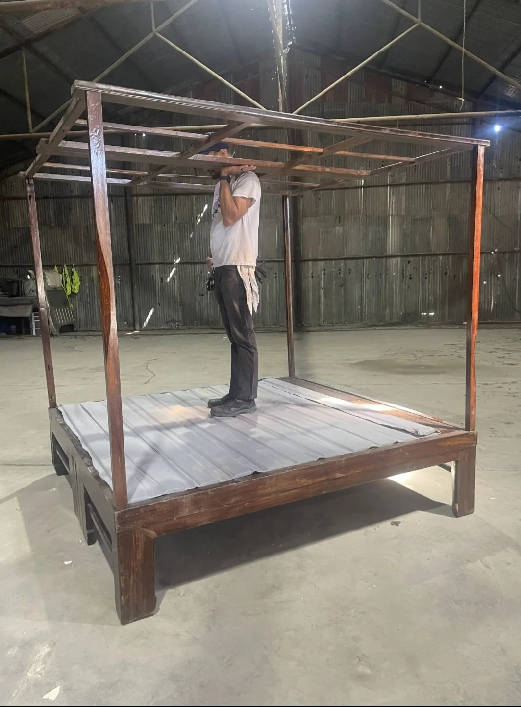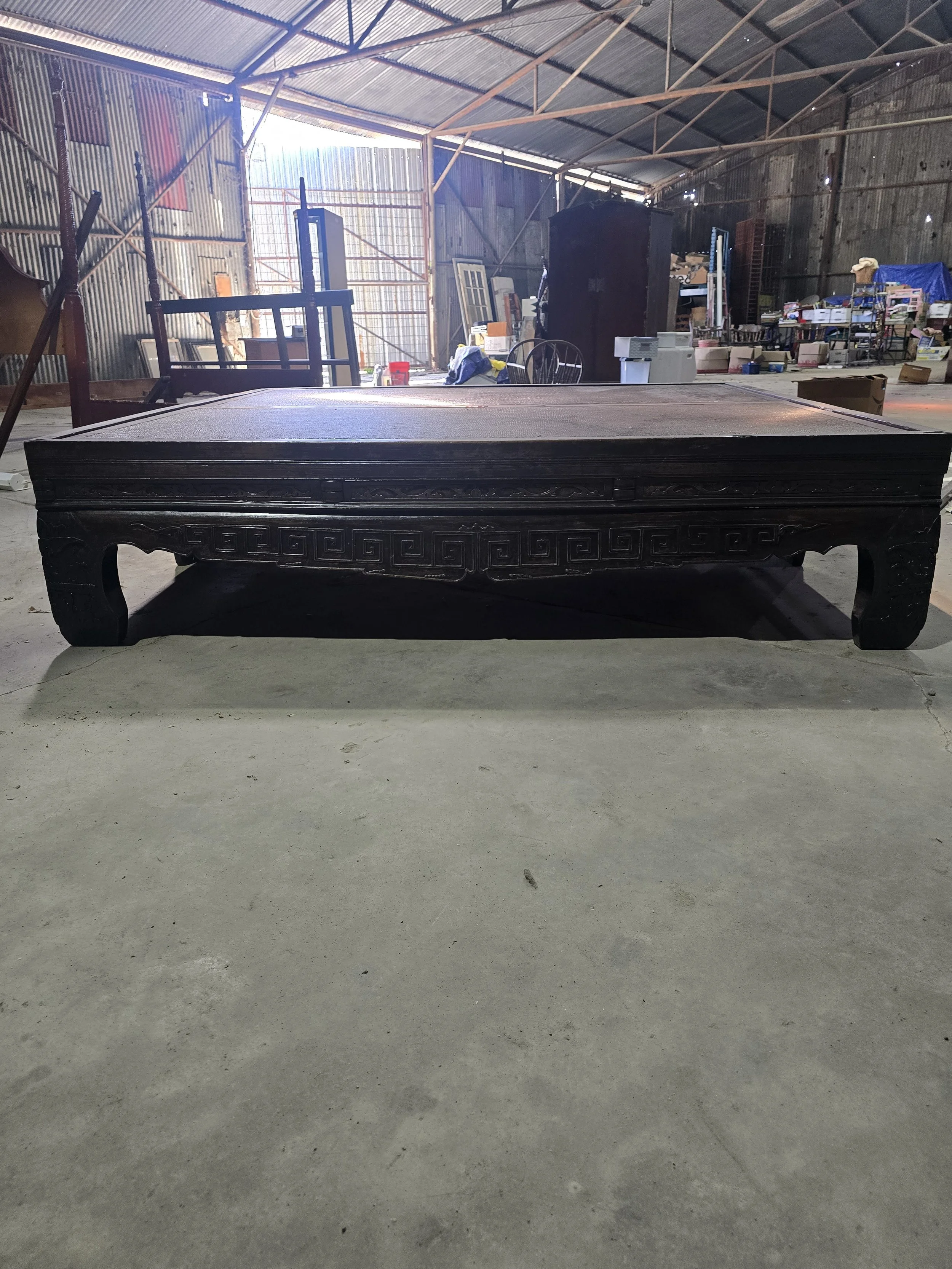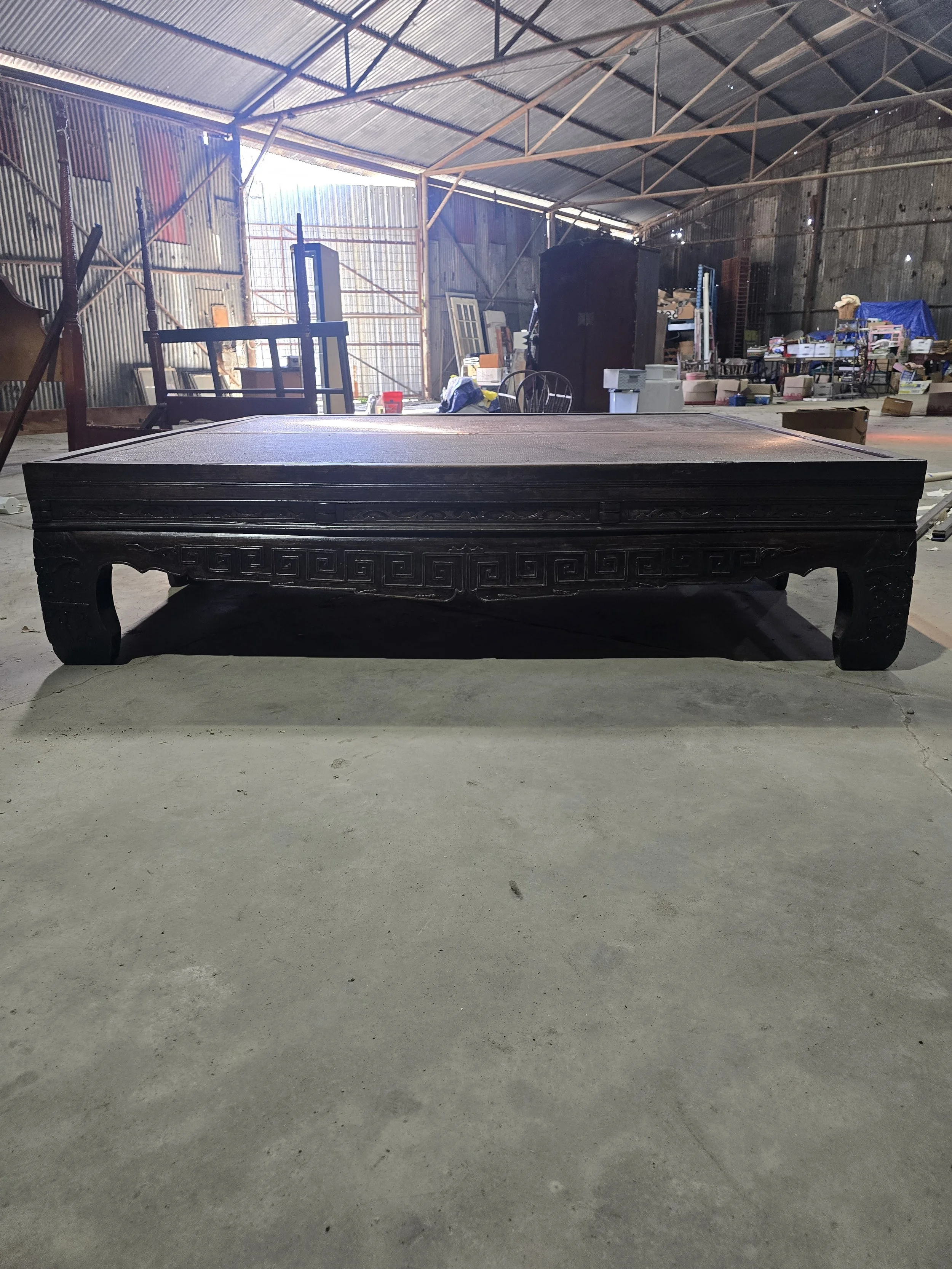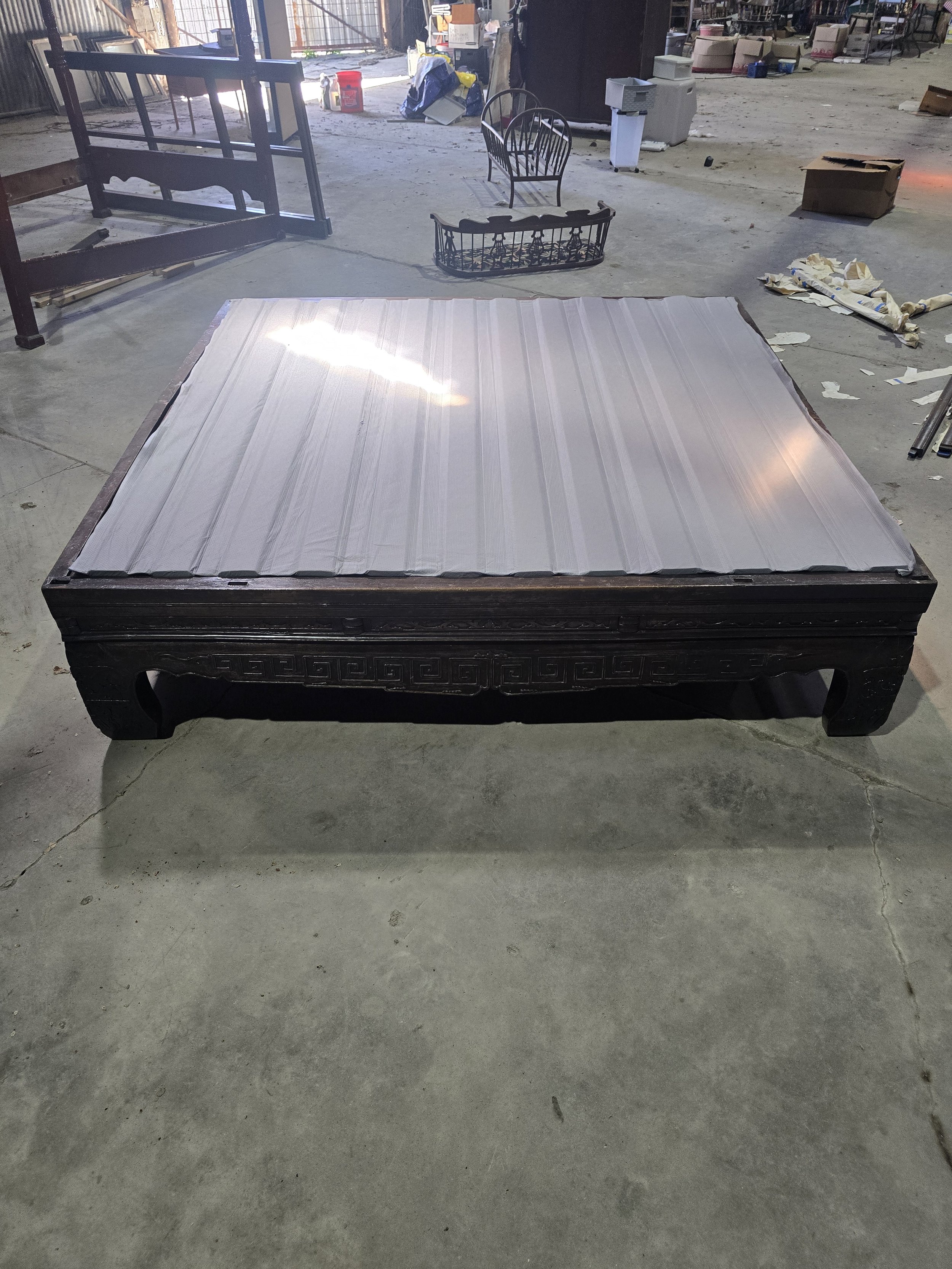 Asian style opium bed. It is not complete. The base is fully functional, including the roll out cover that sits on top of the wooden base. The top however needs more support pieces. It’s an super cool bed, it just needs some love and creativity.