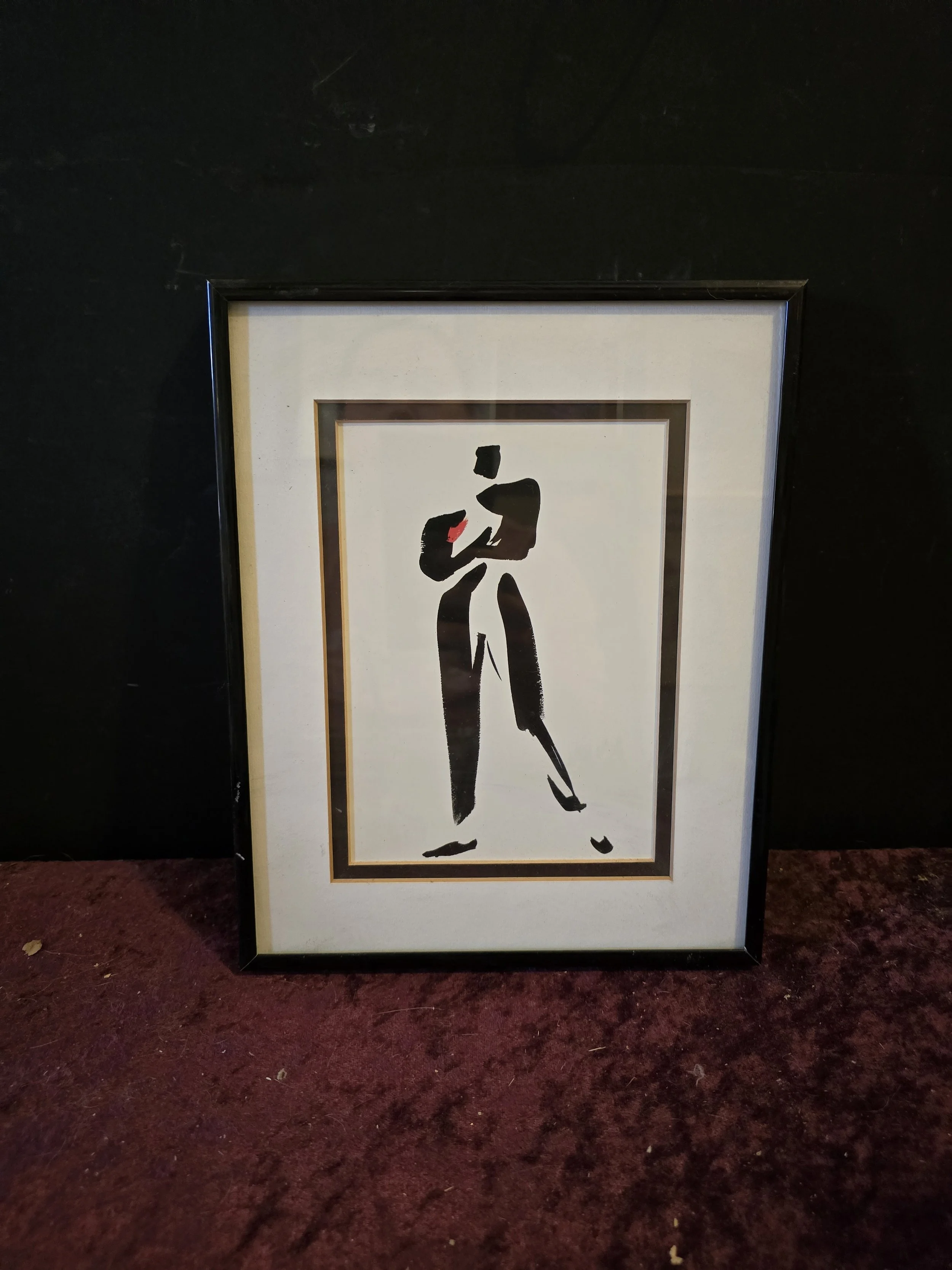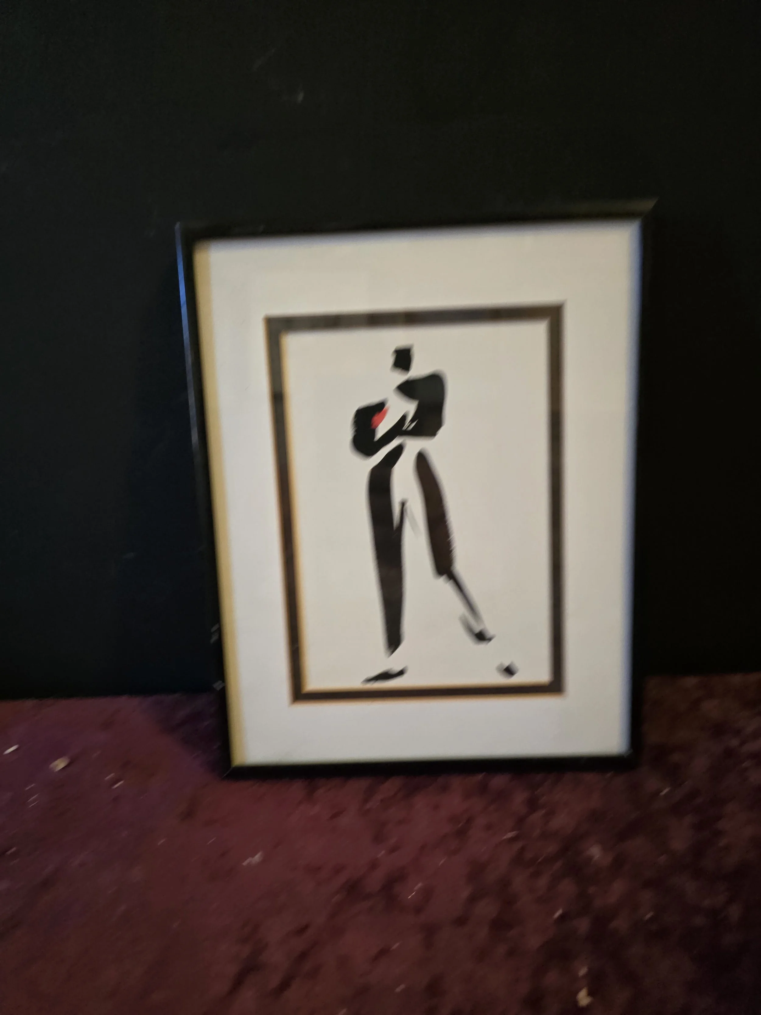 Print of “Romeo” by Michel Canetti in a black metal frame. Art Deco 8” x 10” frame
