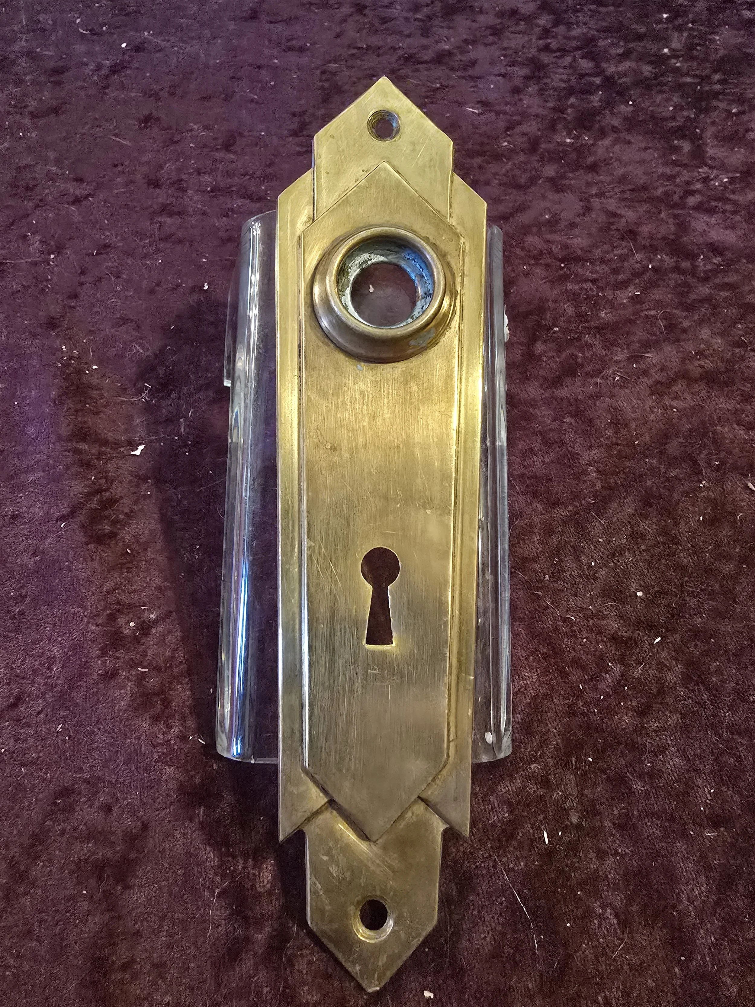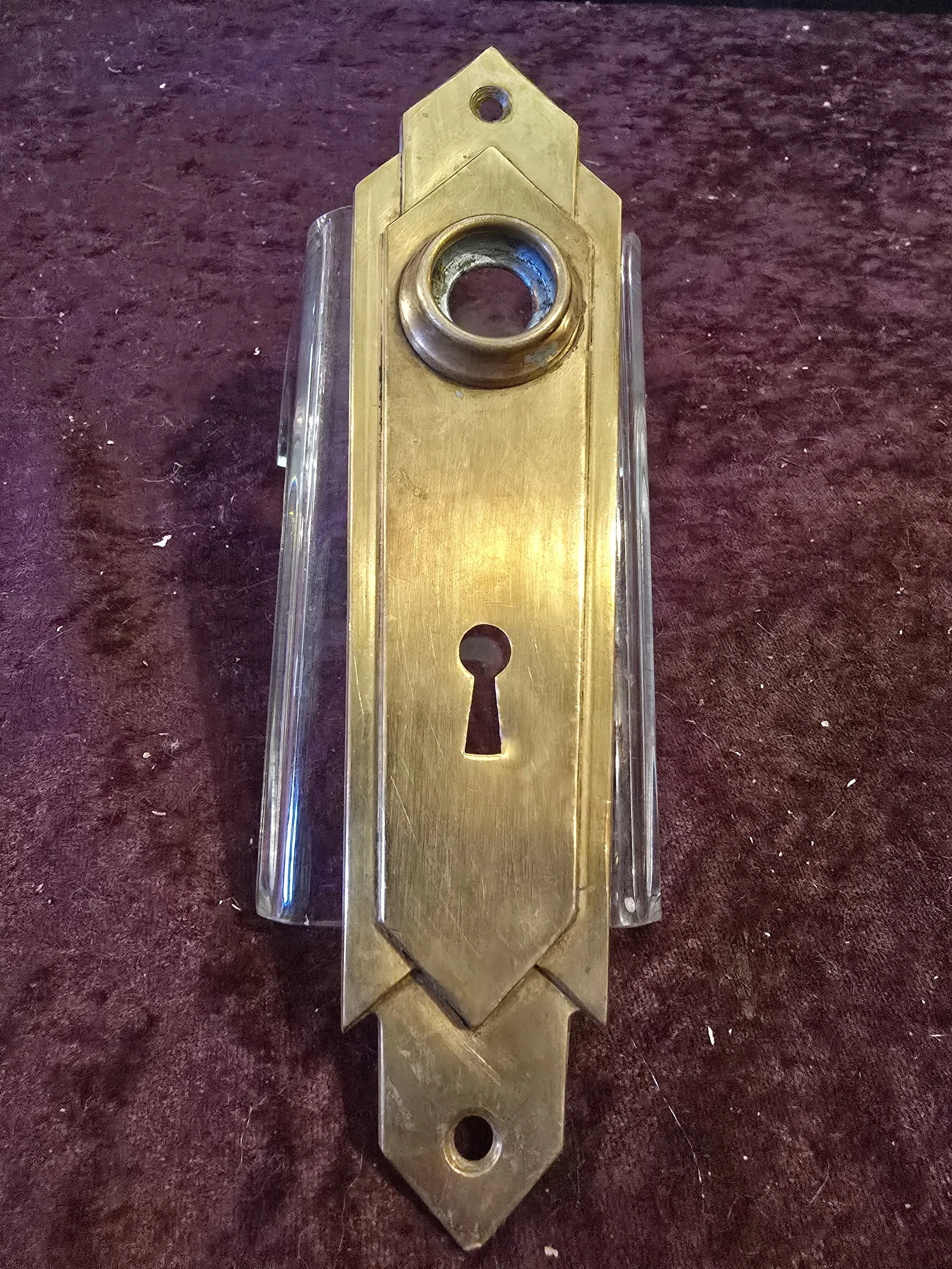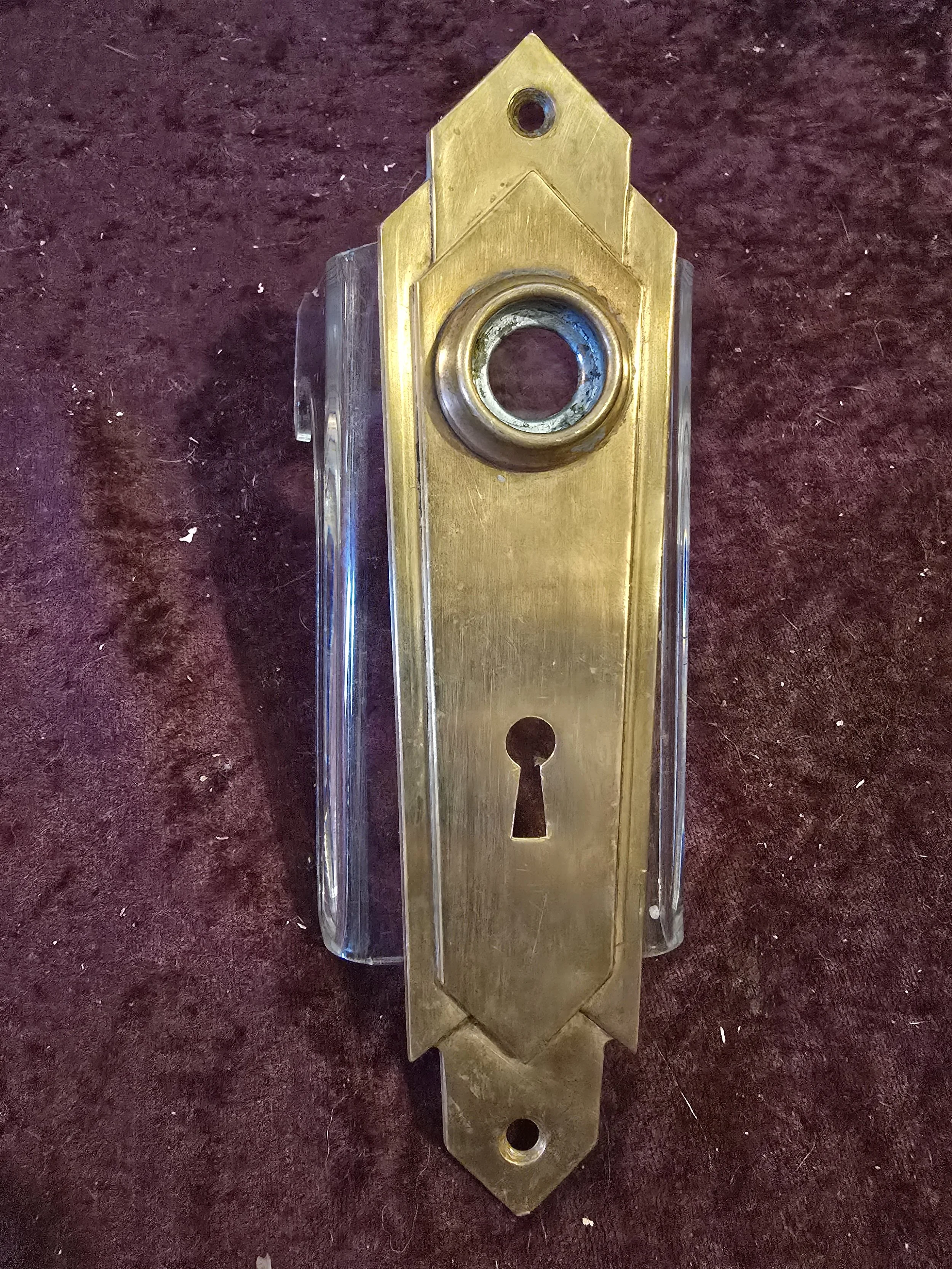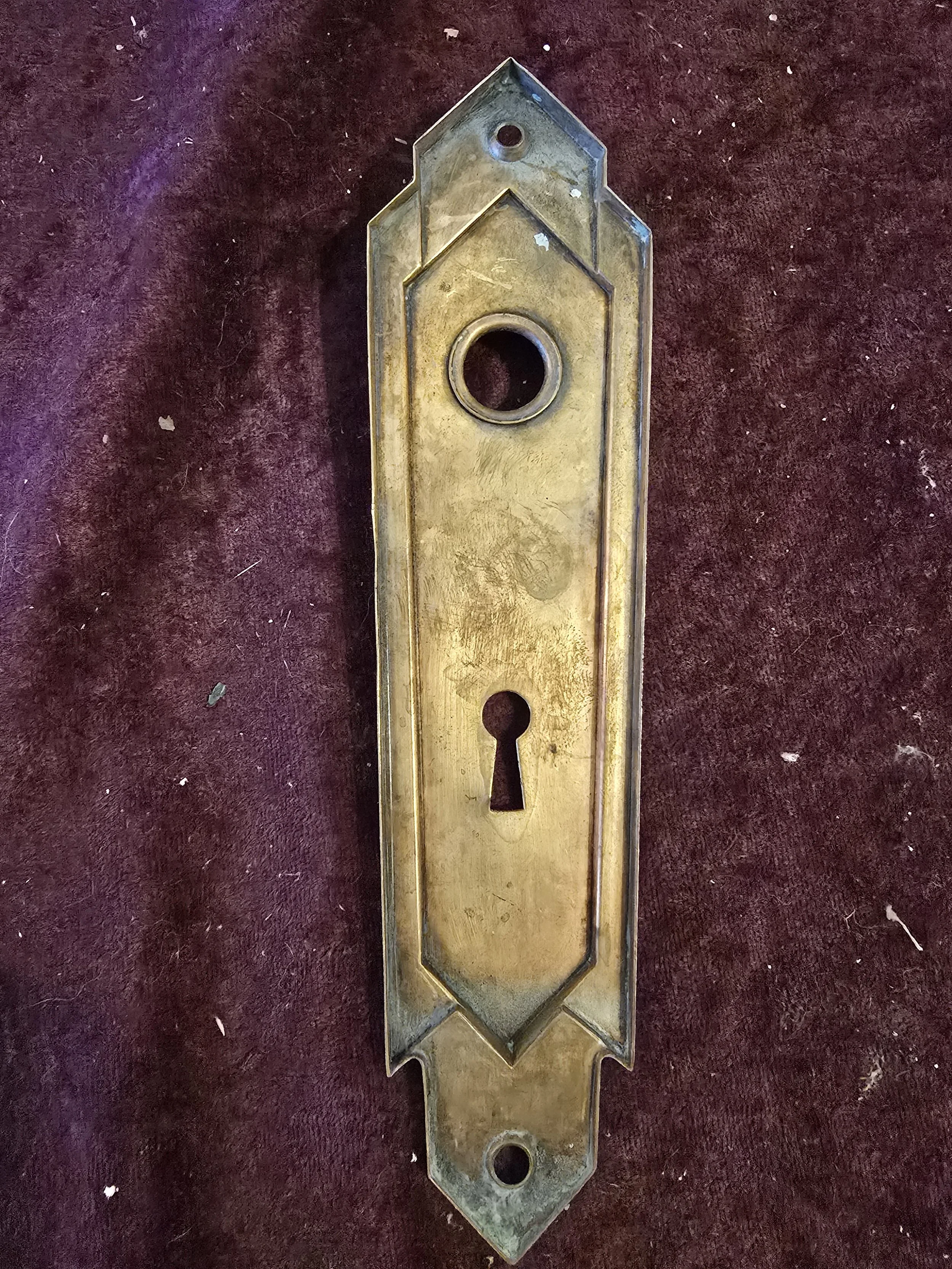 Solid brass 1920's “Skyscraper Style” doorknob backplate