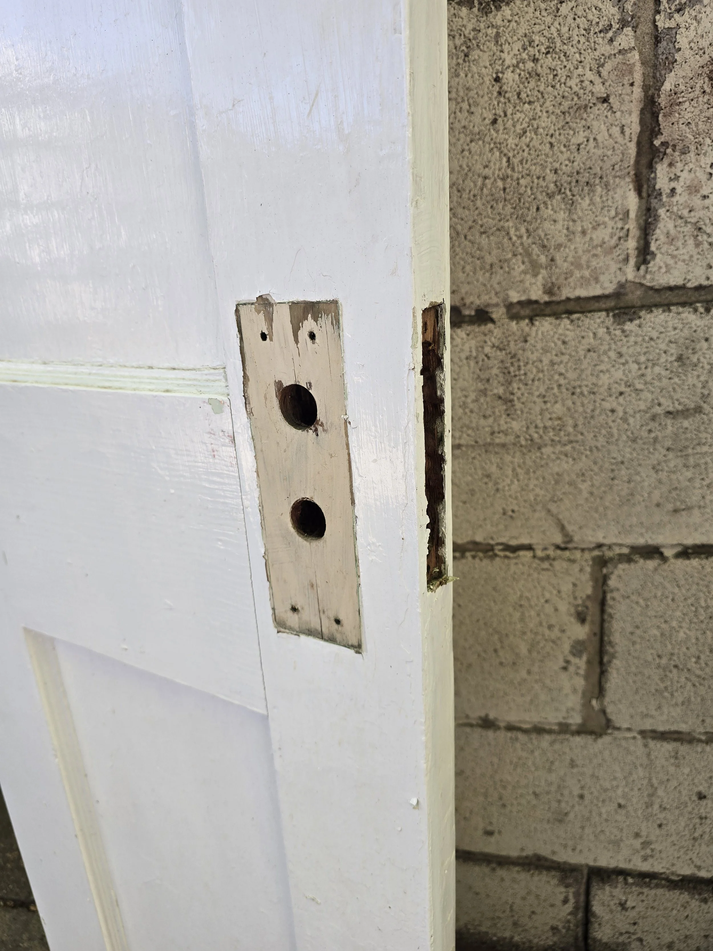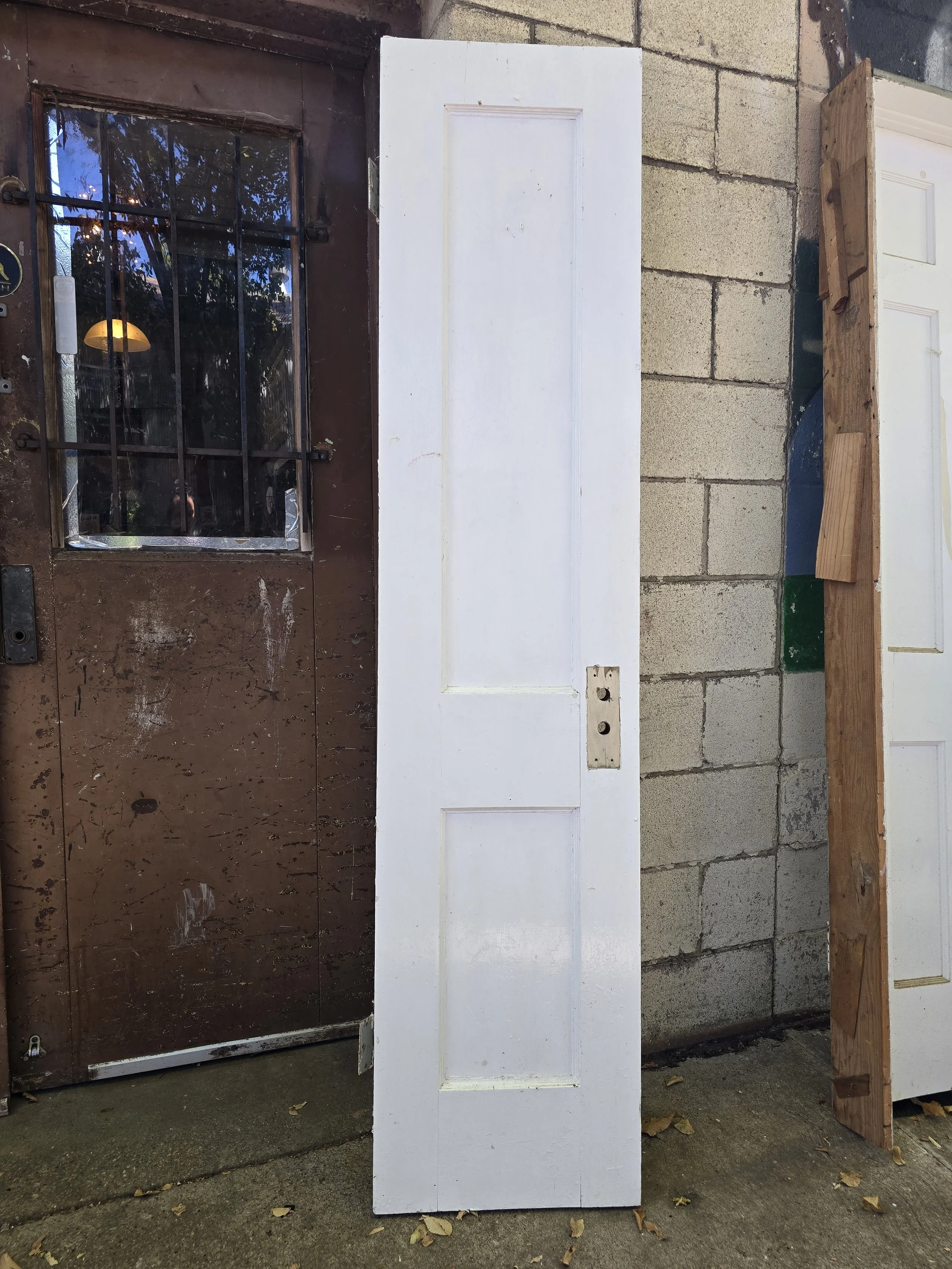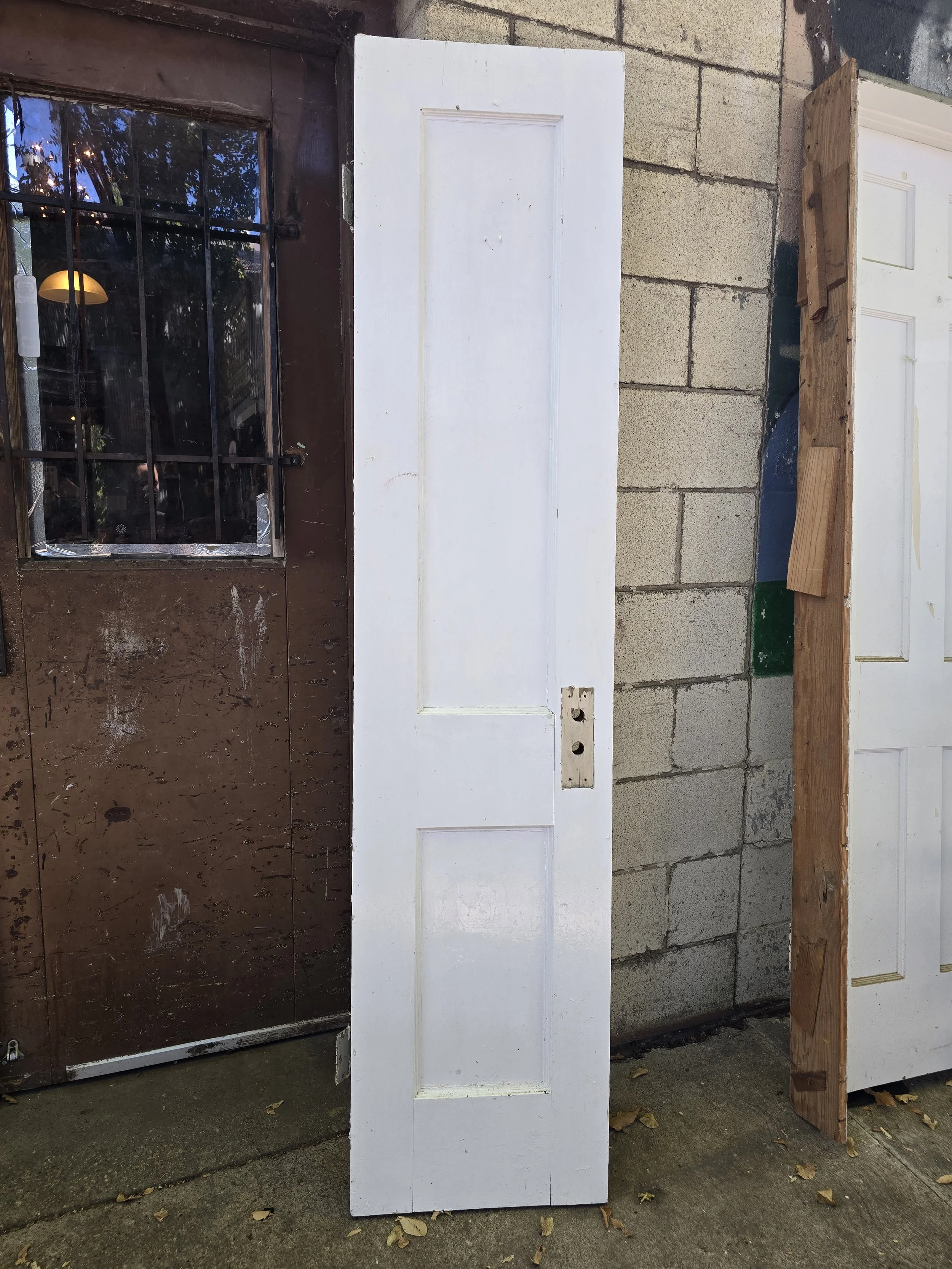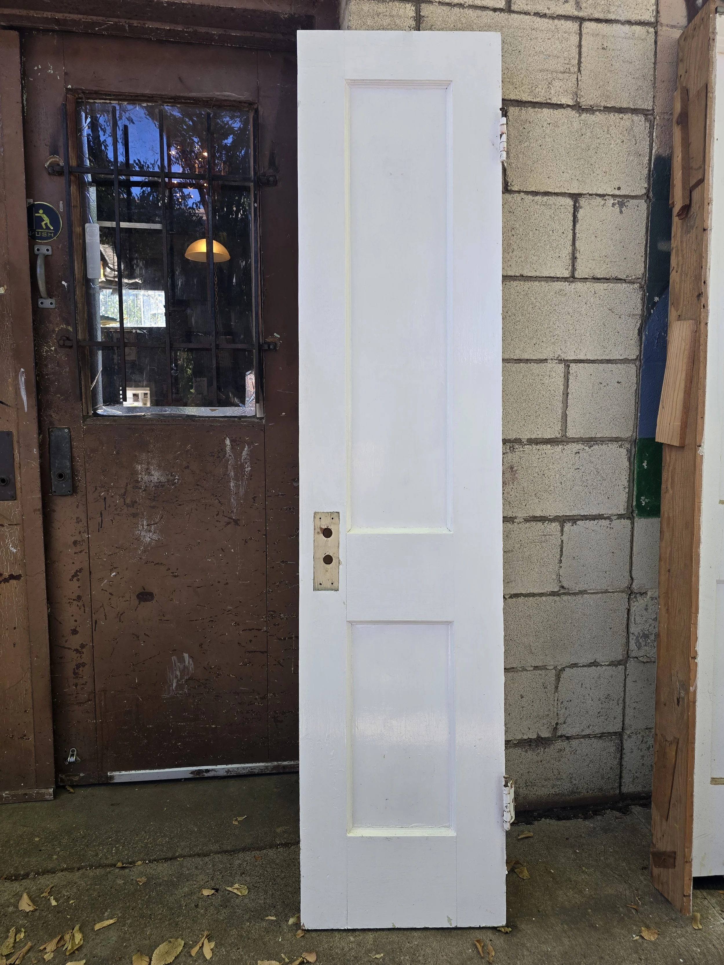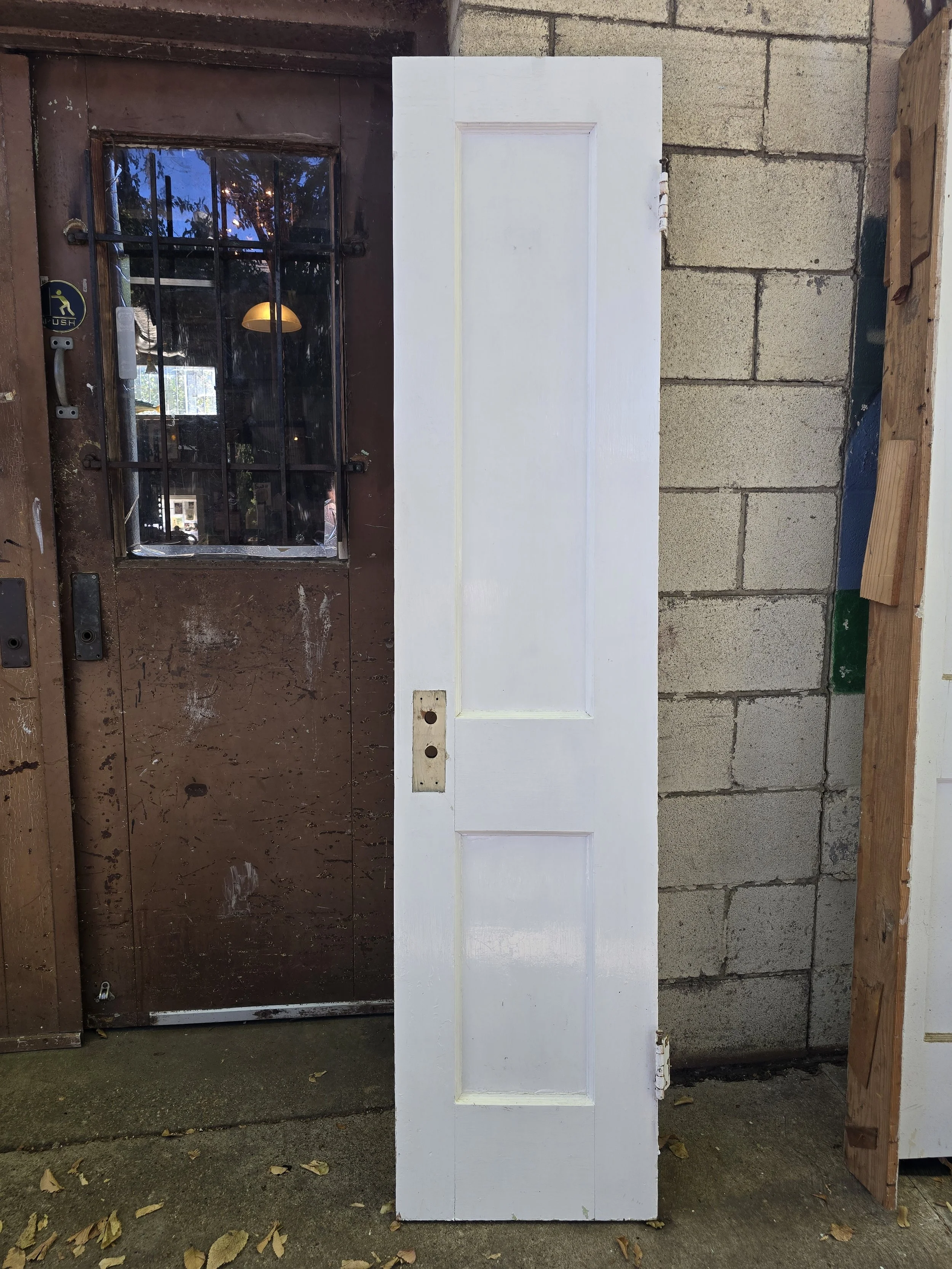 Solid wood 2 panel door removed from historic area home. This door is narrow, perfect for a closet or ironing board.