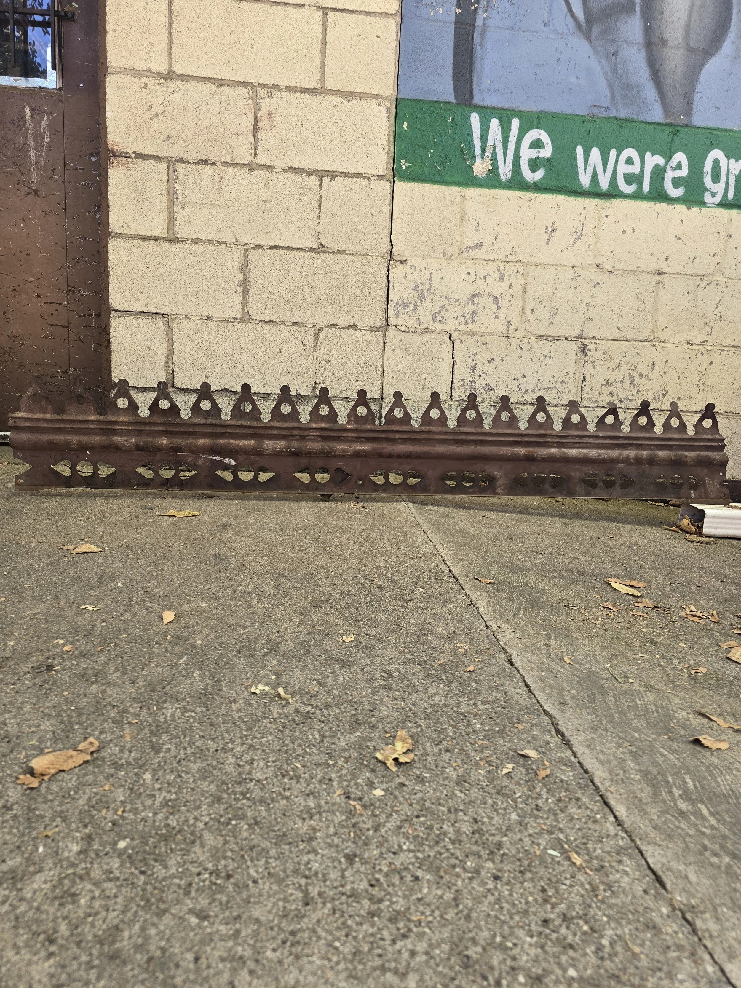 Decorative piece of tin. We can’t quite figure out what exactly this was. Maybe from a fireplace. Either way, it is super cool. Tin has a cool repeating pattern