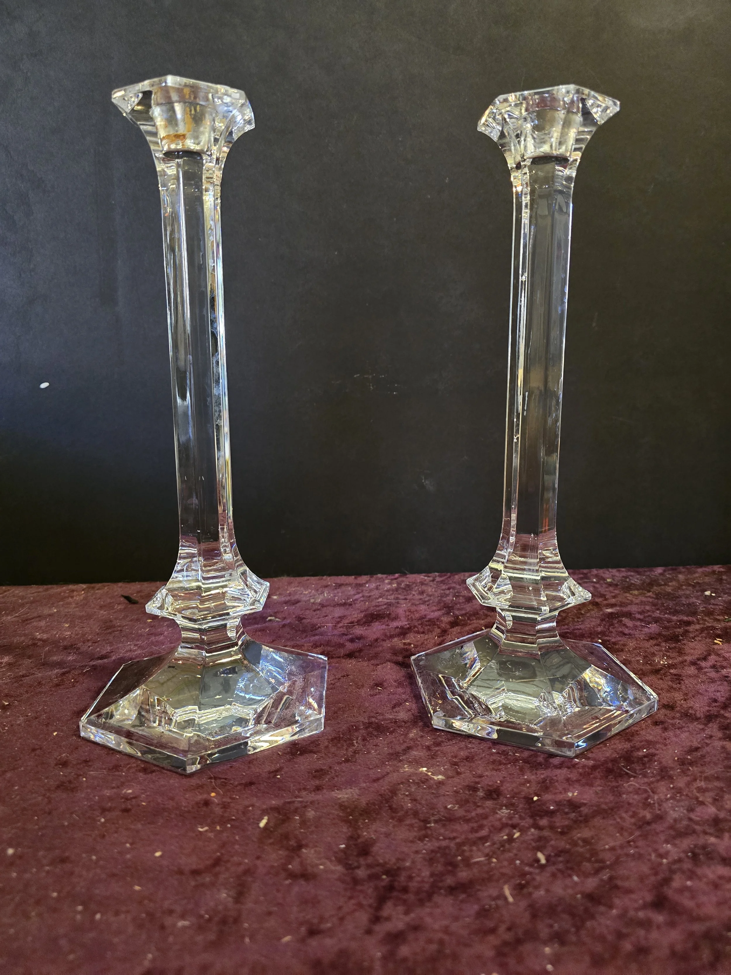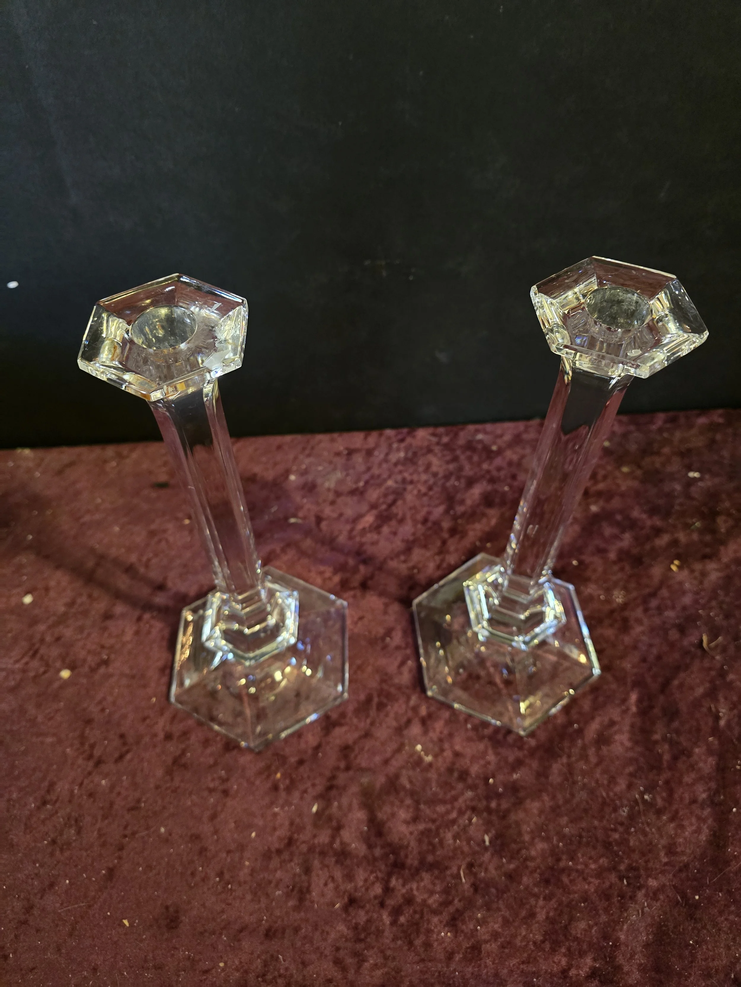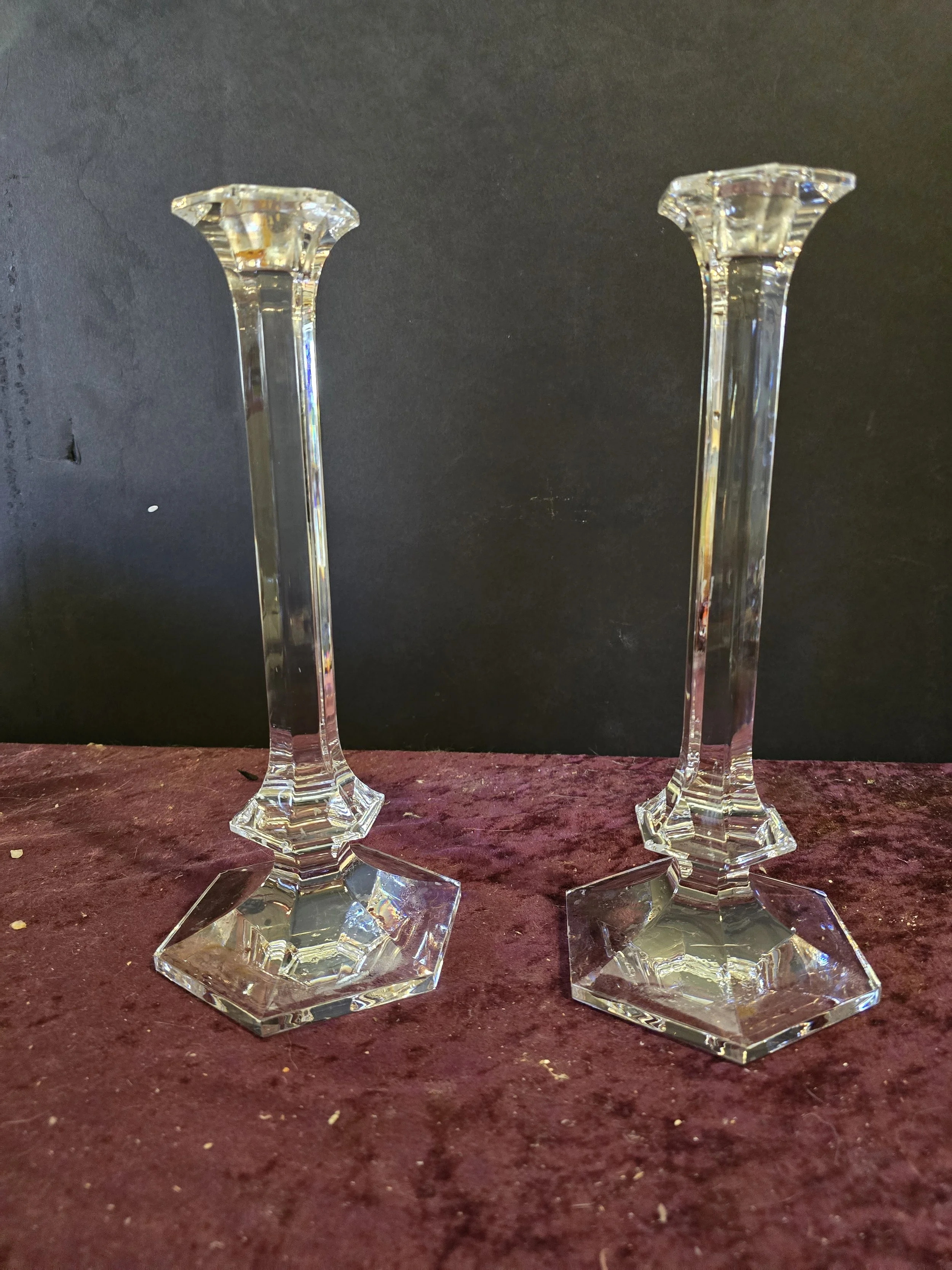 Vintage Val St Lambert Candlestick Elysee 11 3/4 Inch Heavy Crystal Set of 2
